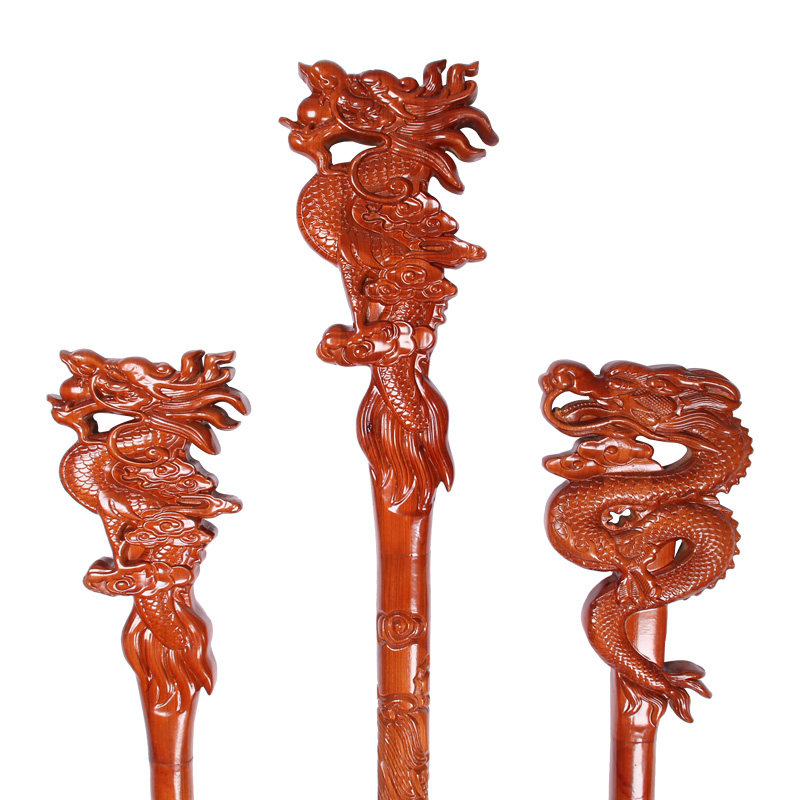 Natural peach wood tap Cane Stick with large number Real wood sculptures Taijun Cane Seniors Wishing 2 m Dragon Head Walking Stick