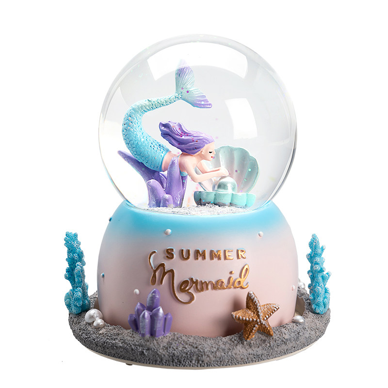 Creative Gift Birthday Girl Music Box Crystal Ball Mermaid Princess Dream Snow Snow Large Octop Box Toy