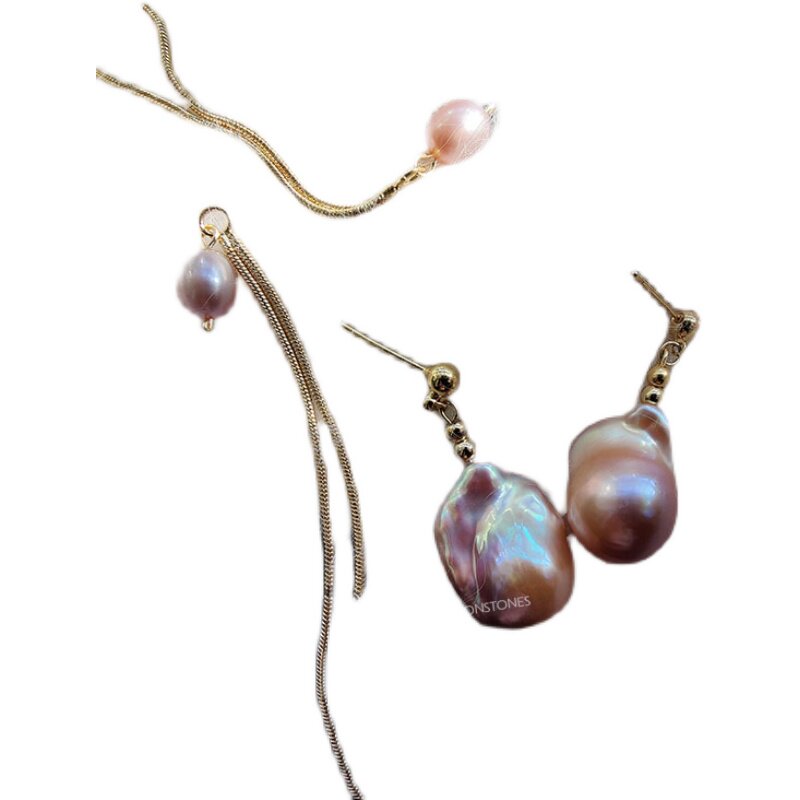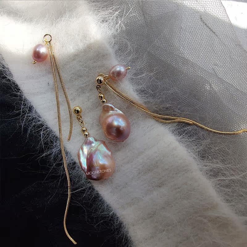Purple big buck earrings imported from the United States with gold-coated gold balls plated with 18K gold metal dazzling purple charm purple long tassels