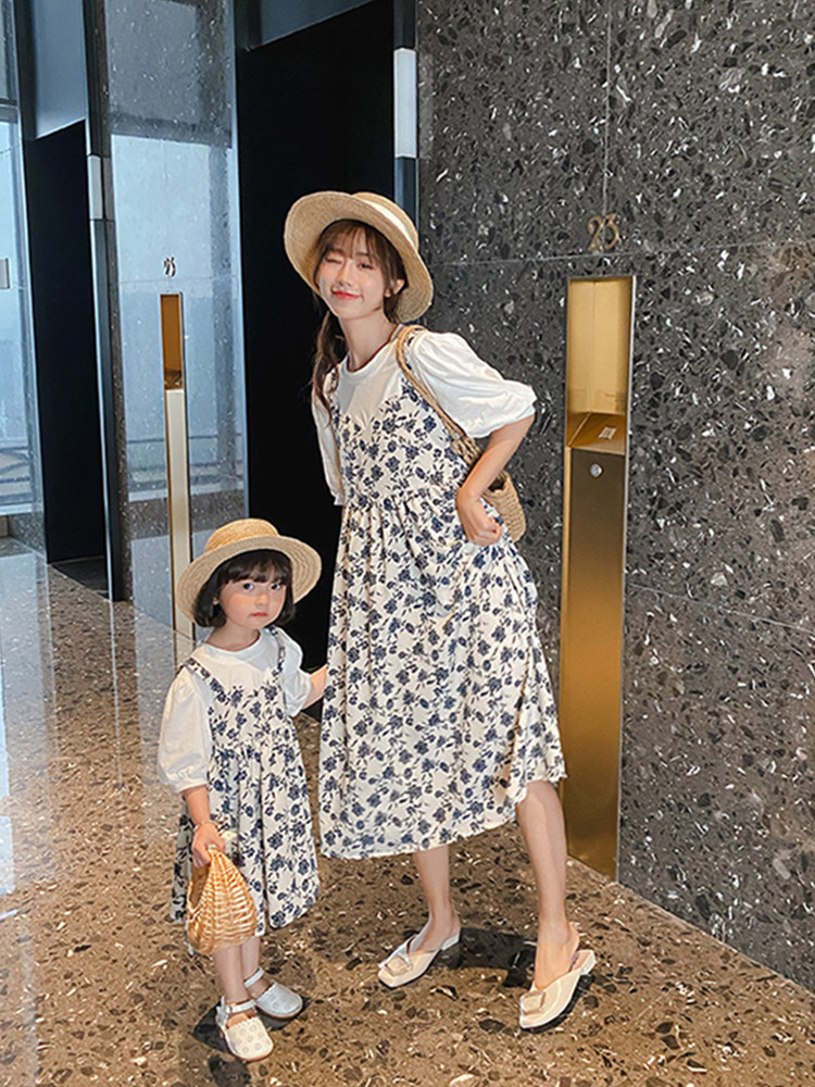 South Korean children's clothing 2022 Summer new medium long version Broken Flower Hanging with Skirt Mother Woman Suit South Korea Short Sleeve Pro-Tide