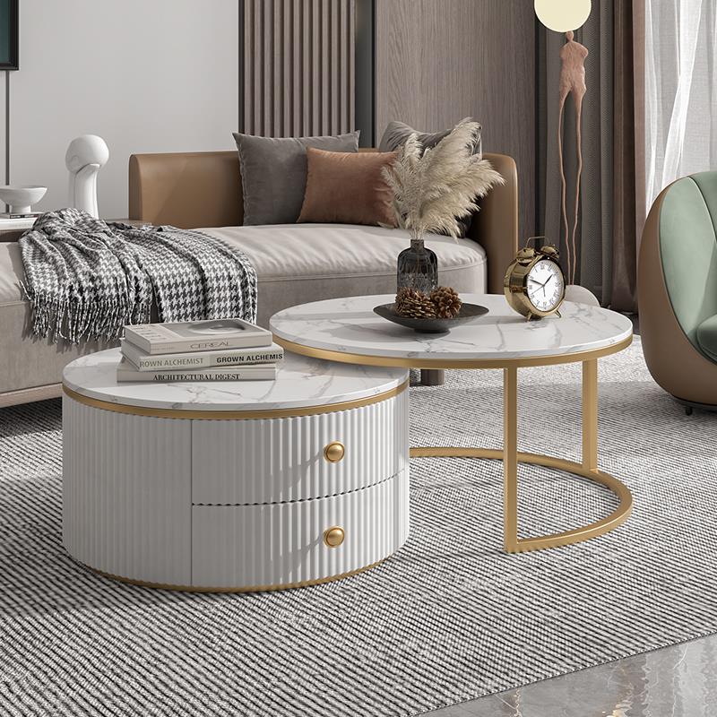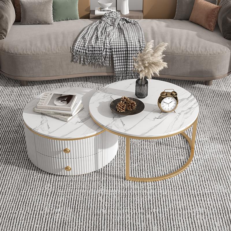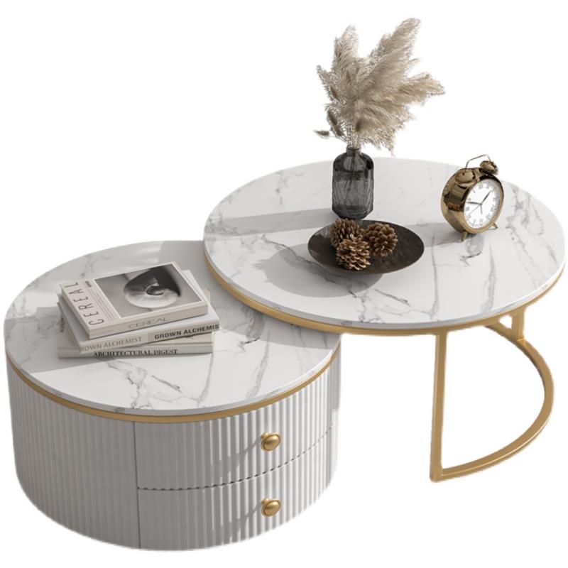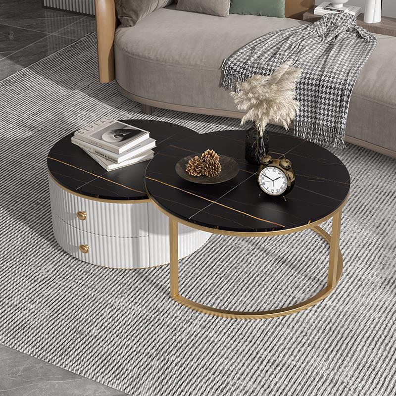 Slate coffee table simple modern small apartment round light luxury TV cabinet combination living room household marble size round