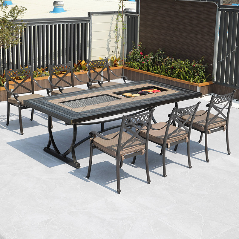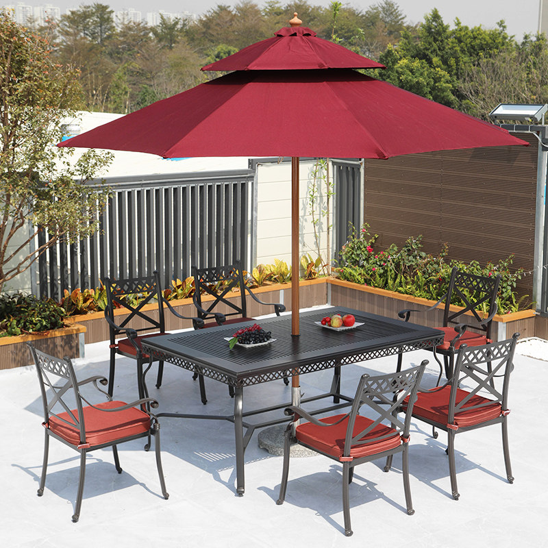 Outdoor Cast Aluminum Table And Chairs Outdoor Courtyard Garden Terrace Casual Benches Iron Art Chair Kit Embalming Sun Protection Sunscreen Long Table-Taobao
