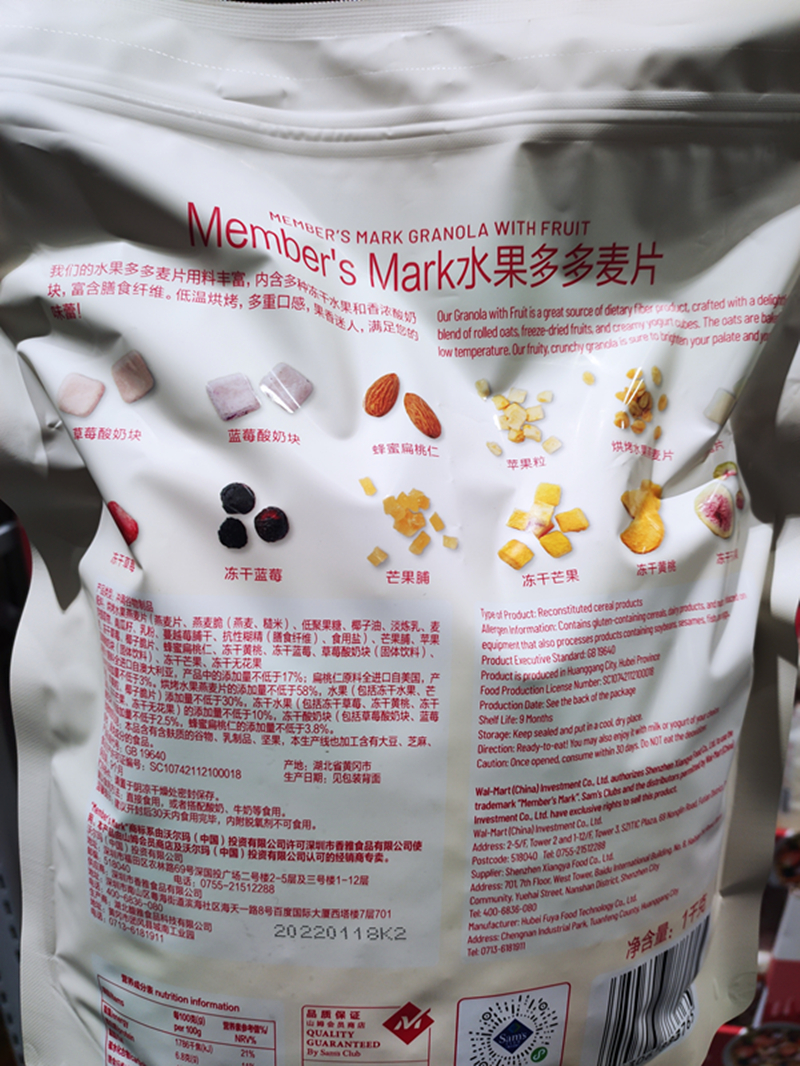 Sam member supermarket MM fruit multi-cereal yogurt 1kg Nutritional Breakfast Oatmeal Strawberry Blueberry