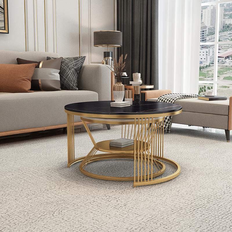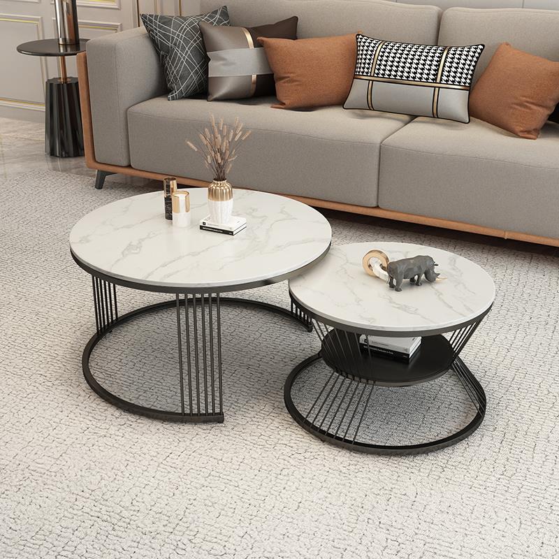 Light luxury rock slab marble round coffee table combination simple modern small apartment net red small coffee table table living room home
