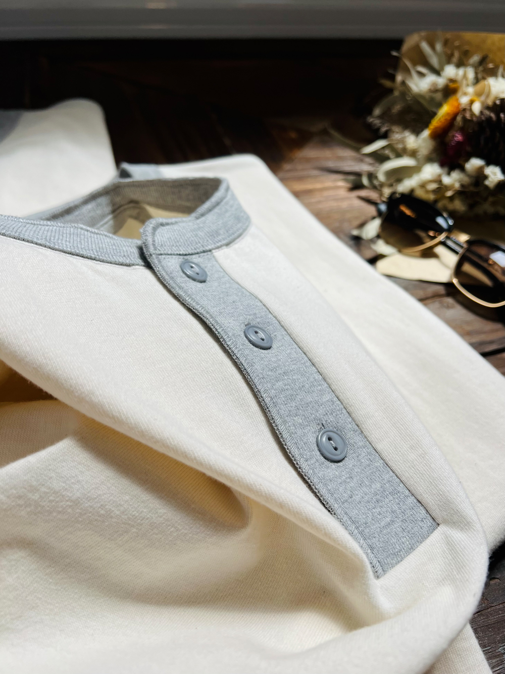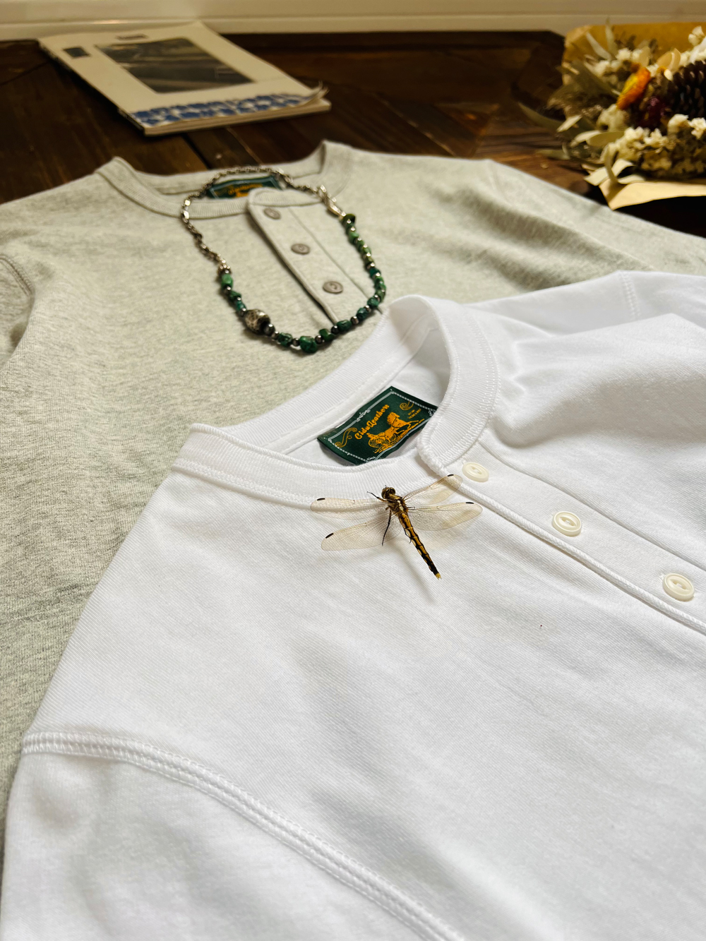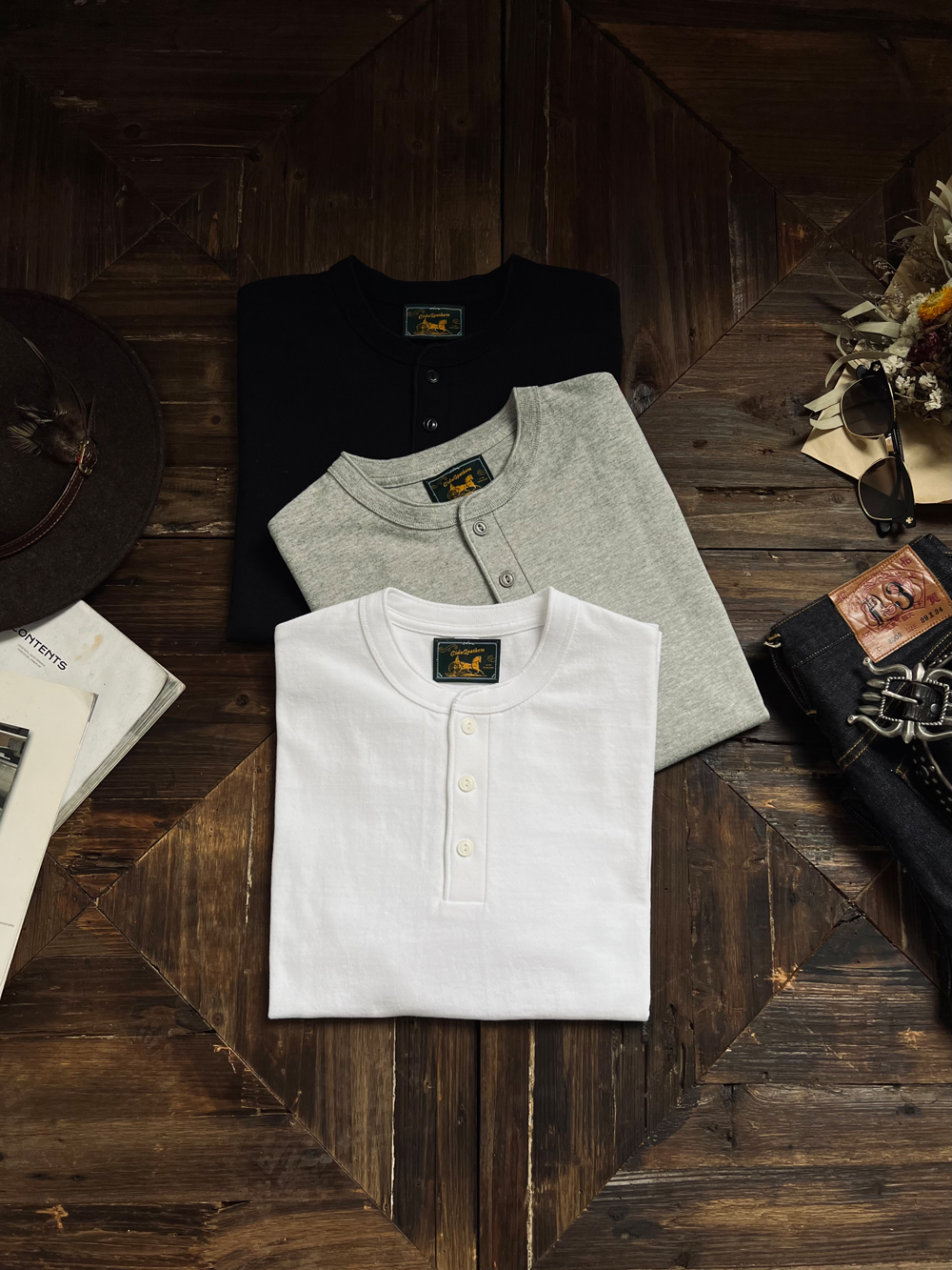 American retro 30s 7 8oz265 grams pure cotton heavy weight seamless barrel Henry collar Summer short sleeve T-shirt-Taobao