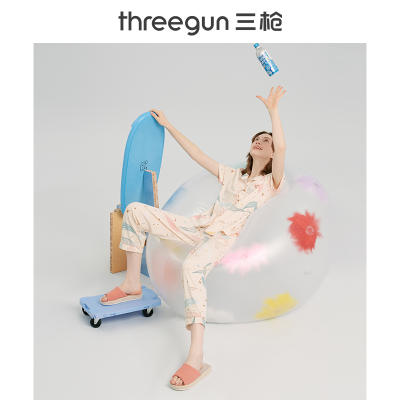 Three Shots Lingerie Official Flagship Store Home Conserved Ladies Pure Cotton Suit 2022 Spring Summer Breathable Flap Open Women's Pyjamas