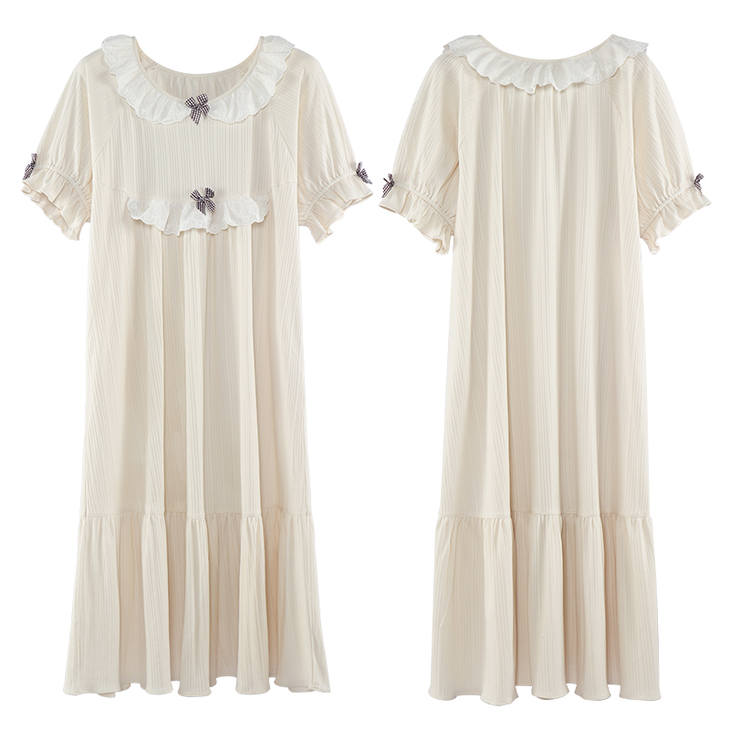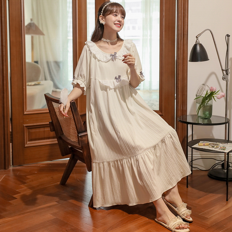 Summer new court sense of pure cotton pajamas ladies thin sweet princess style nightgown homewear can be worn outside