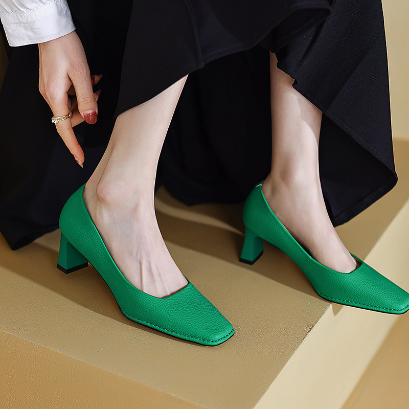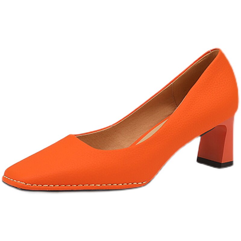 ann it sexy explicit with ~ 2022 high heel shoes women genuine leather orange orange single shoes female square head coarse heel 5 5CM