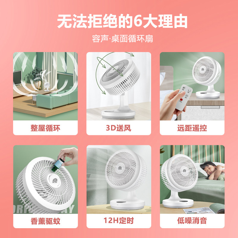 Rongsheng air circulation fan household small desktop bedroom bed table fan mute desktop turbo convection fan