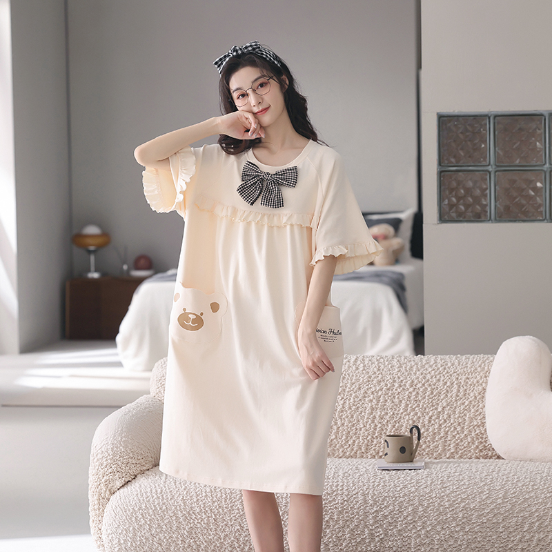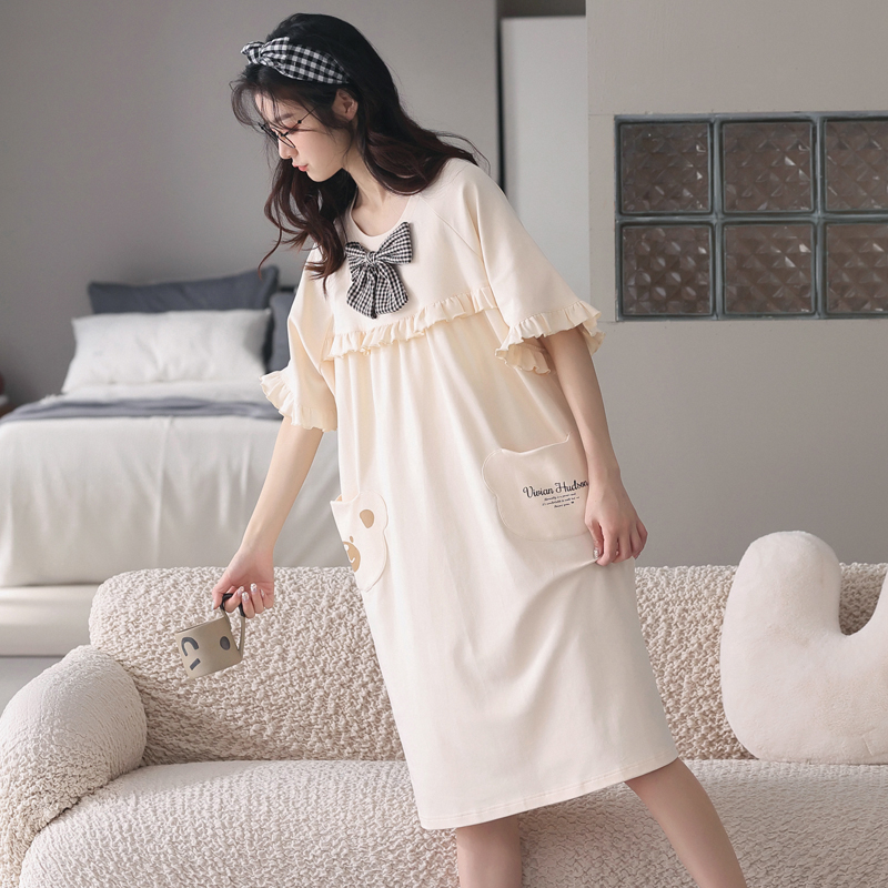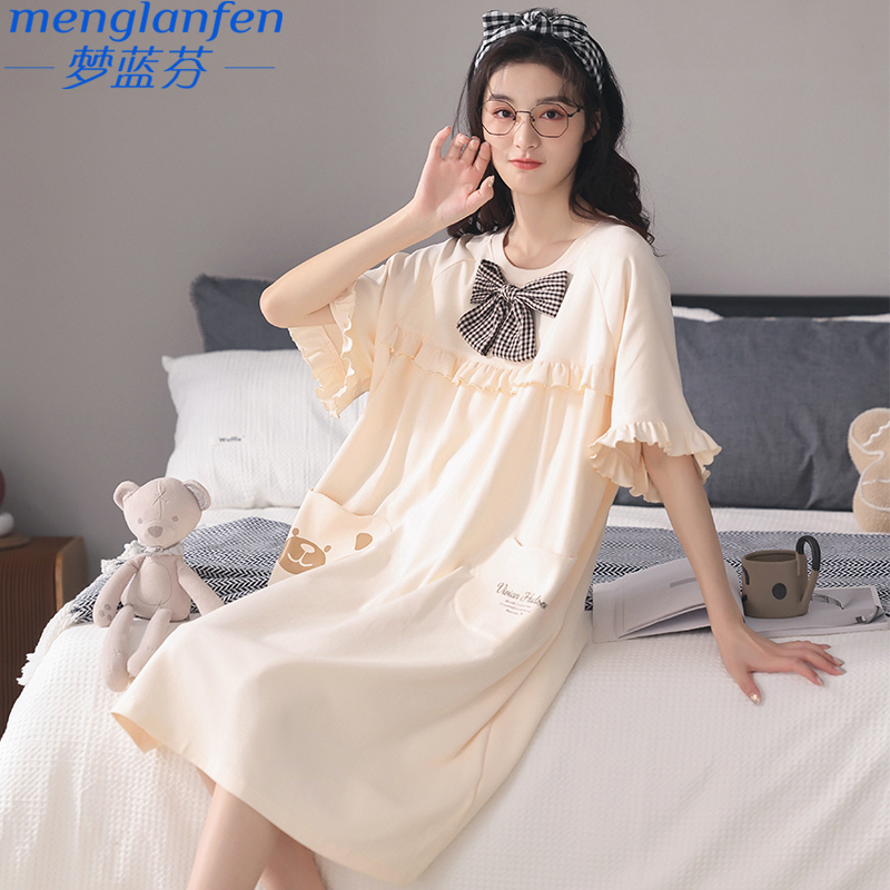 2022 New Sleeping Dress Lady Summer Pure Cotton Short Sleeve Minimalist Home Conserved Girls Sleepwear Summer Thin full cotton