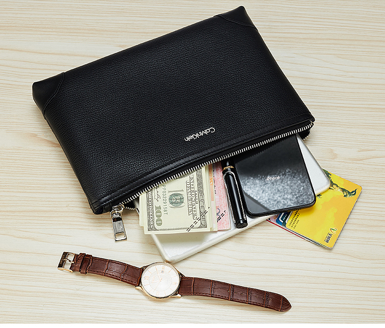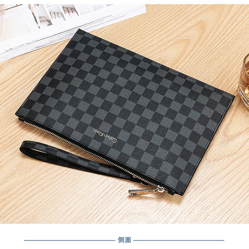 CK Hand Grab Bag Men Genuine Leather Handbag Large Capacity Letter Enveloping Business Fashion Bull Leather Hand Grip Brand New Clip Bag Black