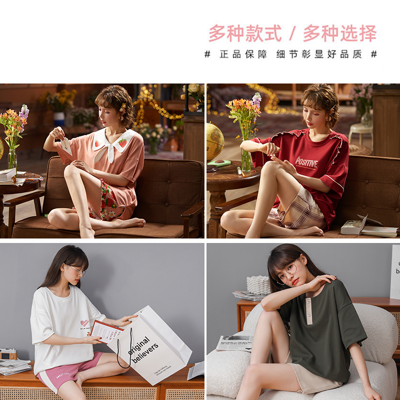 South Pole Pyjamas Women's Summer Pure Cotton Short Sleeve Shorts Cute Day Ensemble can be worn outside suit thin spring and autumn home clothes