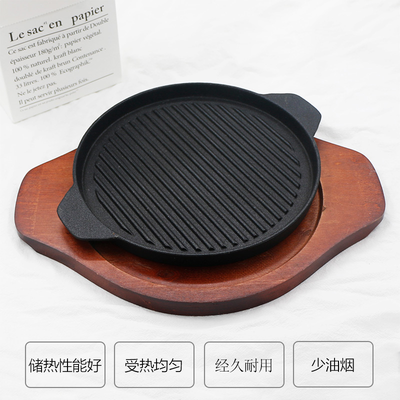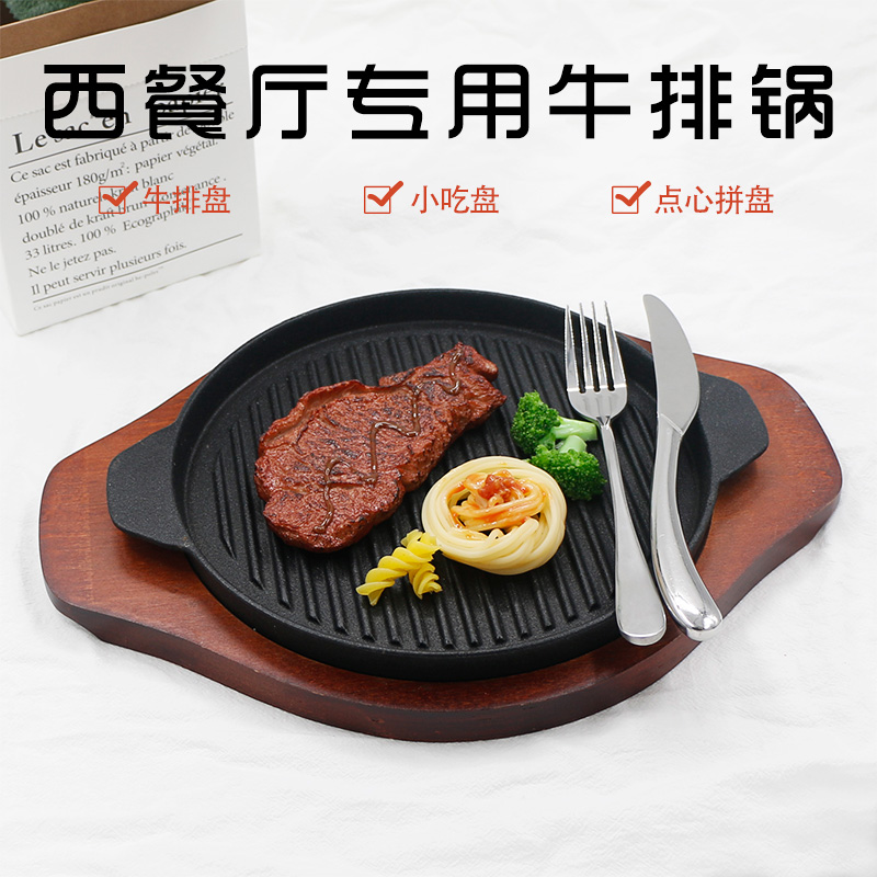 Specially thickened commercial cast iron iron plate grilled western restaurant steak frying pan steak pan household round non-stick barbecue pan