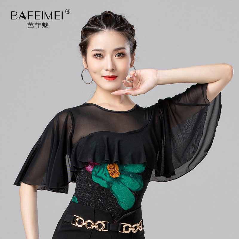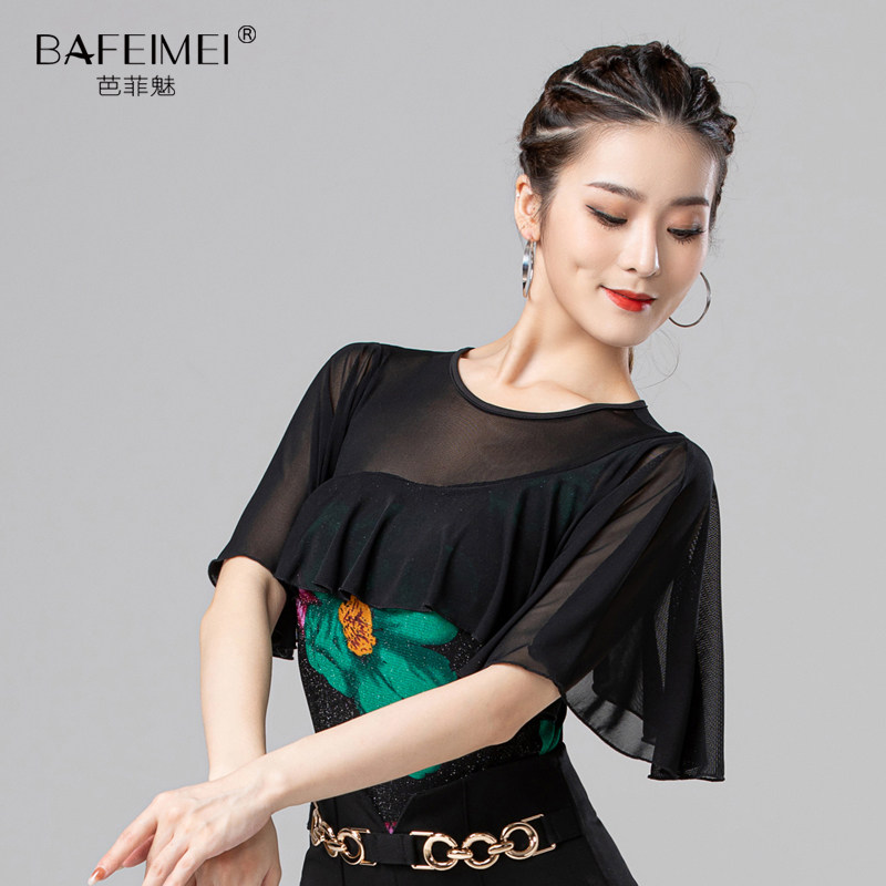 2022 New Modern Dance Town Female Latin Dance Love Leaf Short Sleeves Waltz National Standard Dance Concorder