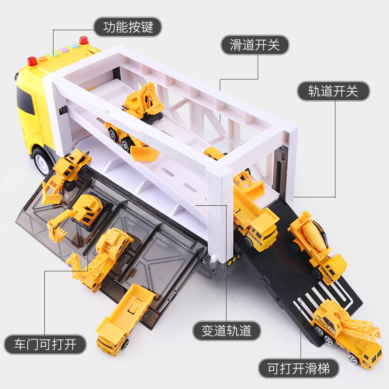Hot selling children's van containing small toy resistant to fall baby wise fun boy Inertia Multifunction Sound And Light Suit