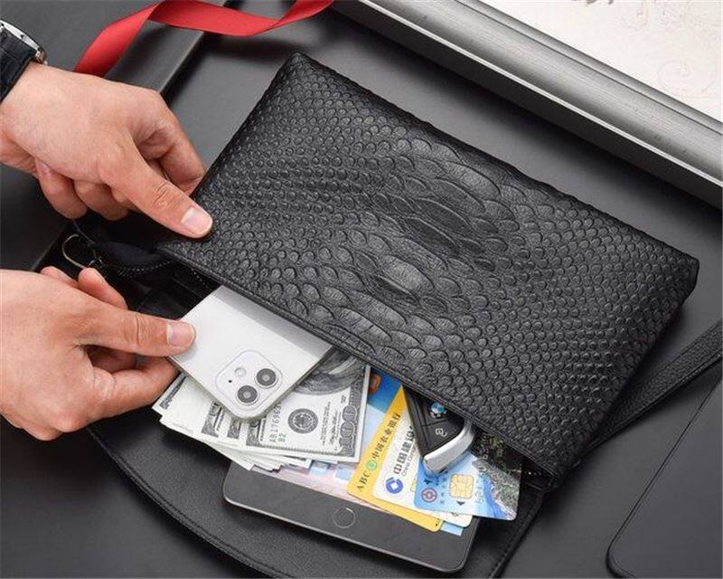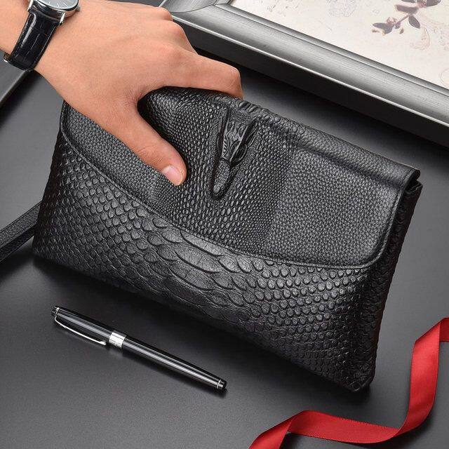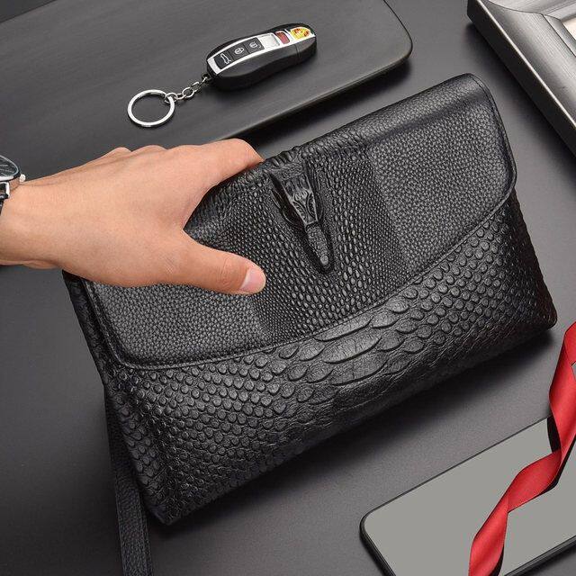 New Handbags Men Genuine Leather Hand Grab Bag Flip Clips Crocodile Tattoo Soft Cow Leather Business Casual Tide Men's Hand Grip Bag