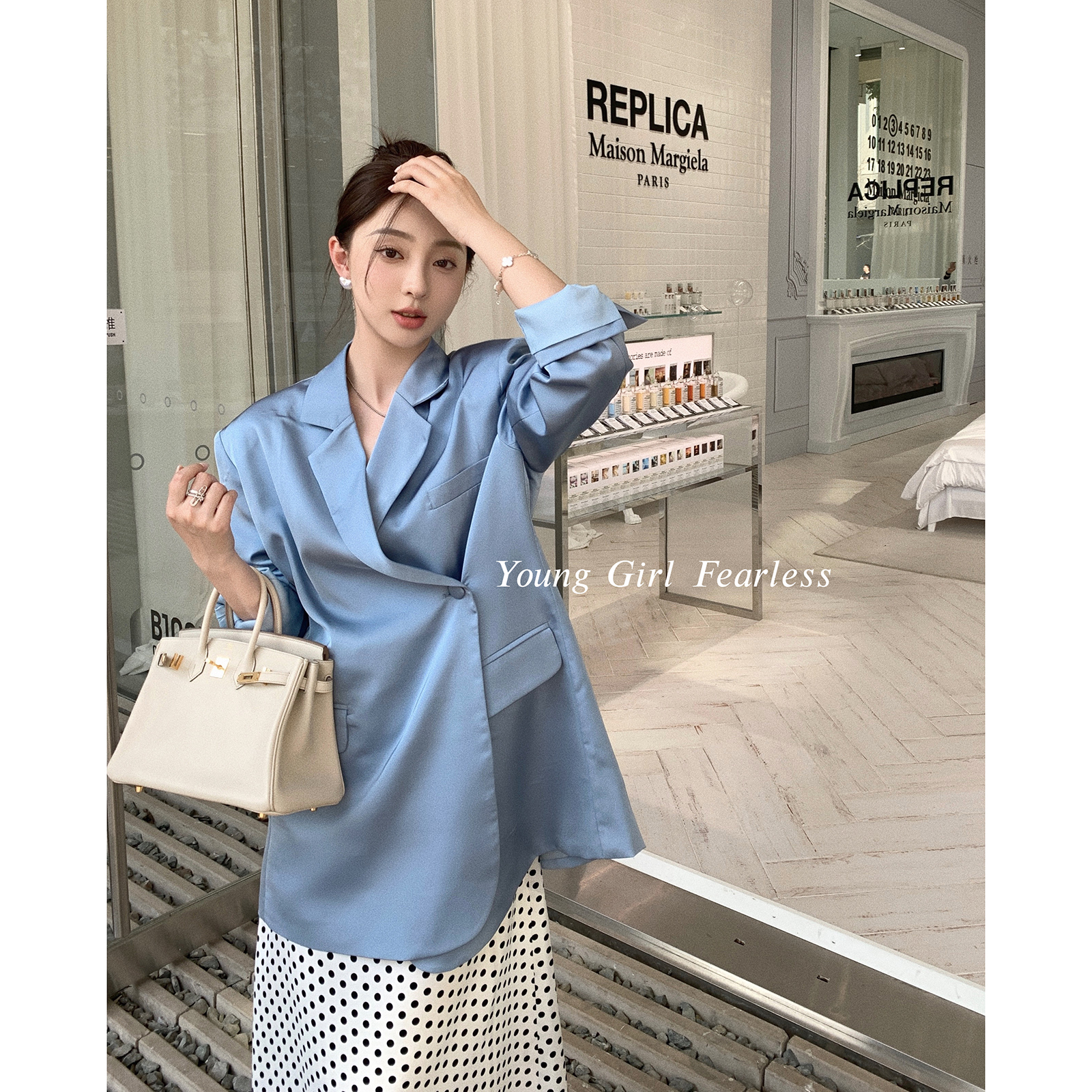 Teenage Fearless Advanced Sensant Satin Suit Jacket Woman 2022 Spring new Temperament Commute Design Sensation Blouse