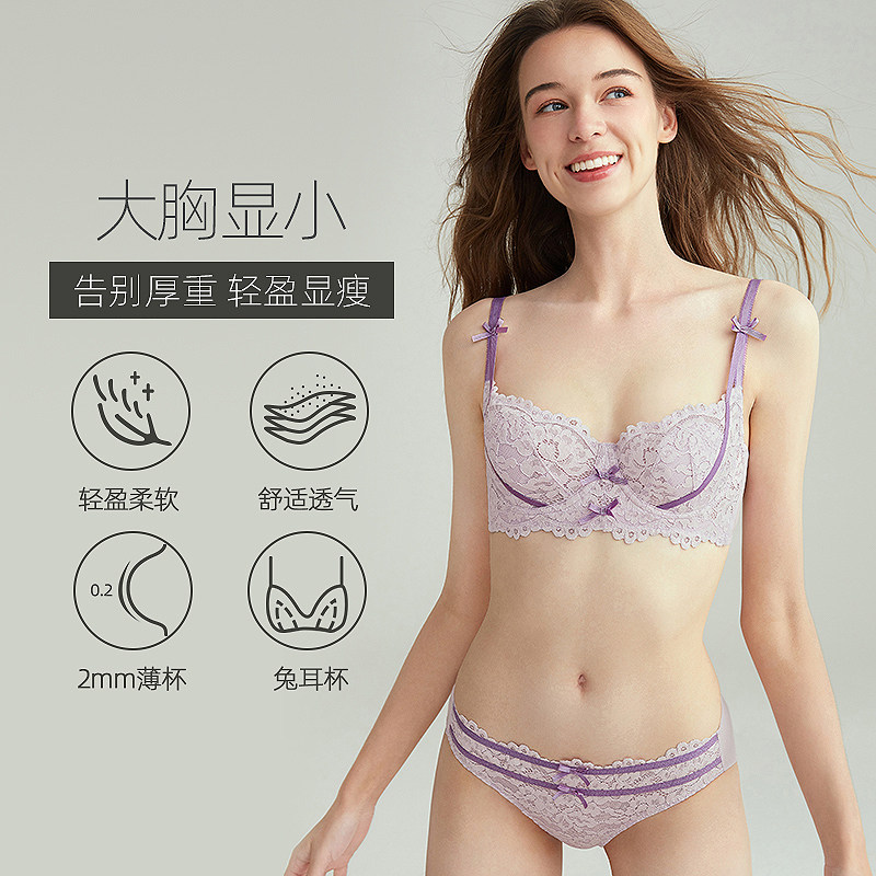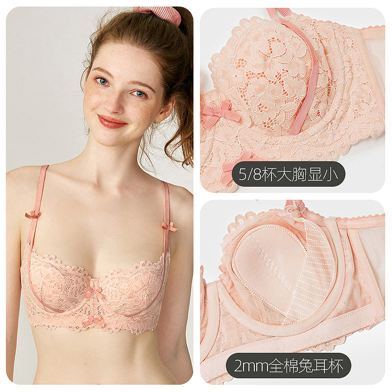 Curious Max French Lingerie Women's Big Breast Show Small Bra Set Summer Thin Sexy Lace Top Bra