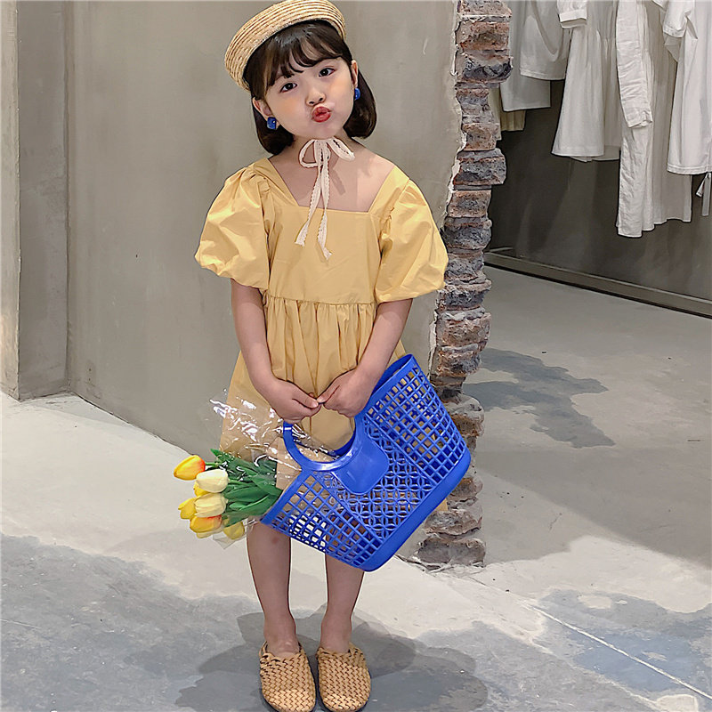 High end special pro-submount 2022 summer dress new French style square collar relaxed foreign bubble sleeveless female dress surges