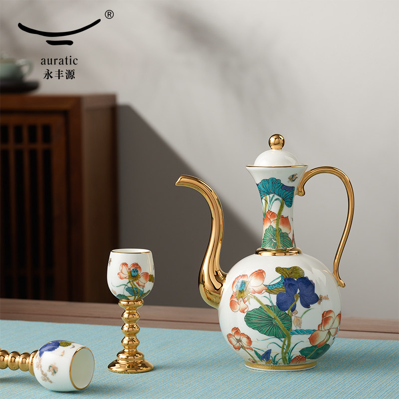 (New) Yongfengyuan Happiness and Ming 14 head wine set Ceramic wine jug wine glass Light luxury gifts