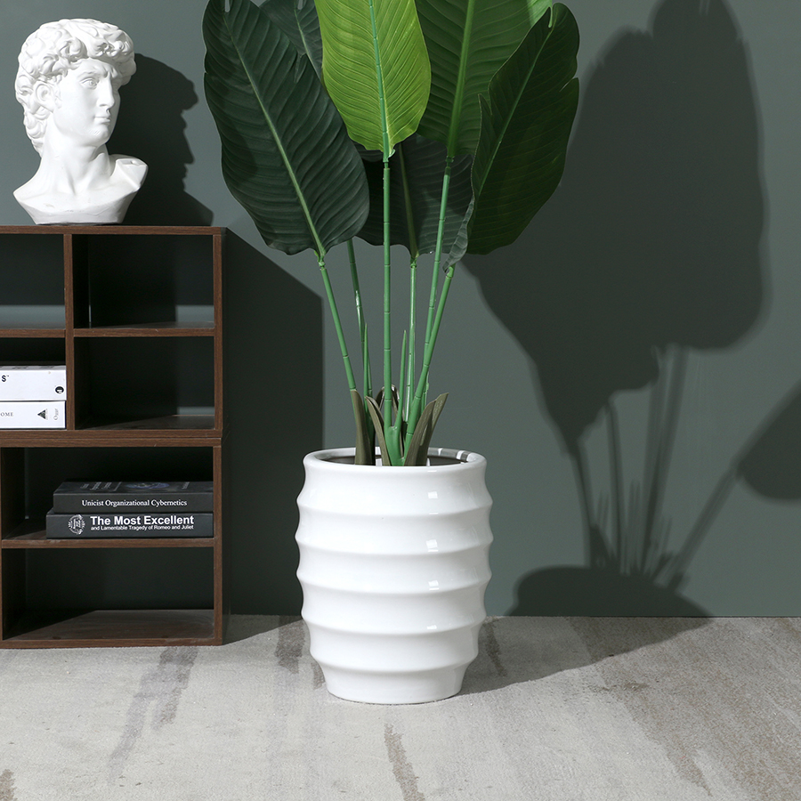 Threaded white extra-large ceramic flowerpot large size 30cm or more striped happiness tree special flowerpot for home living room