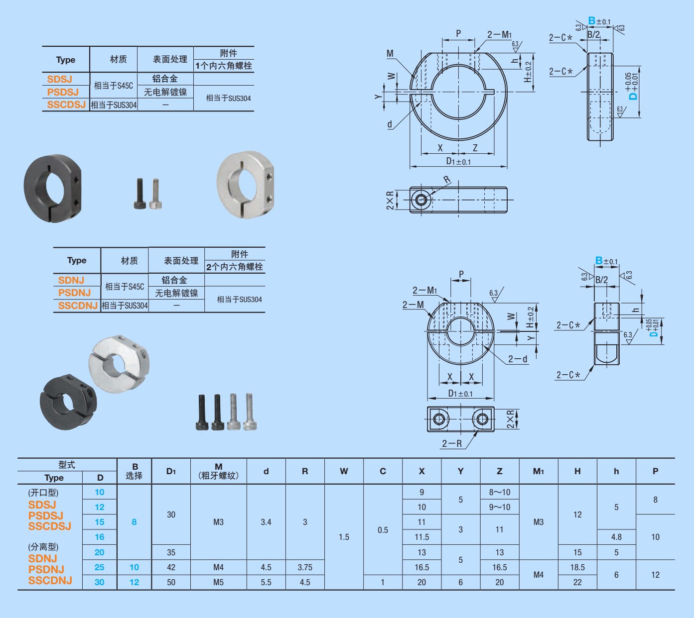 D-opening type-SDSJ-inner diameter 10MMD opening type-SDSJ-inner diameter 12MMD opening type-SDSJ-inner diameter 15MMD opening type-SDSJ-inner diameter