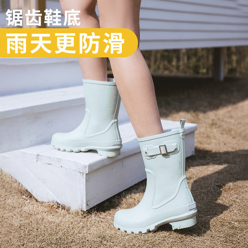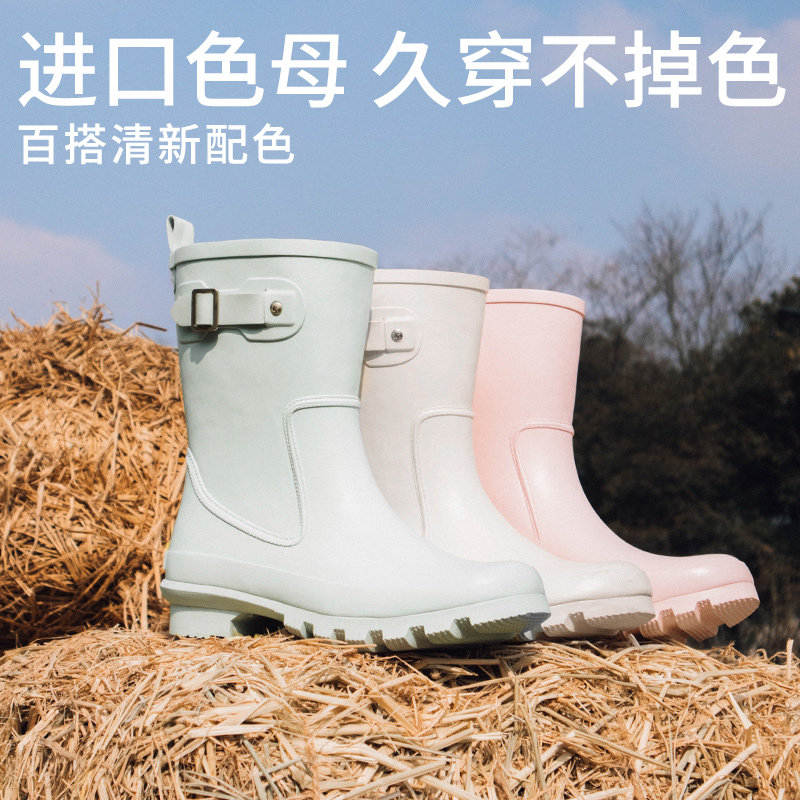 Rain Shoes Women's Fashion Outwear Middle Cylinder Rain Boots Women Summer Adults Water Shoes New Waterproof Non-slip Rubber Shoes Water Boots