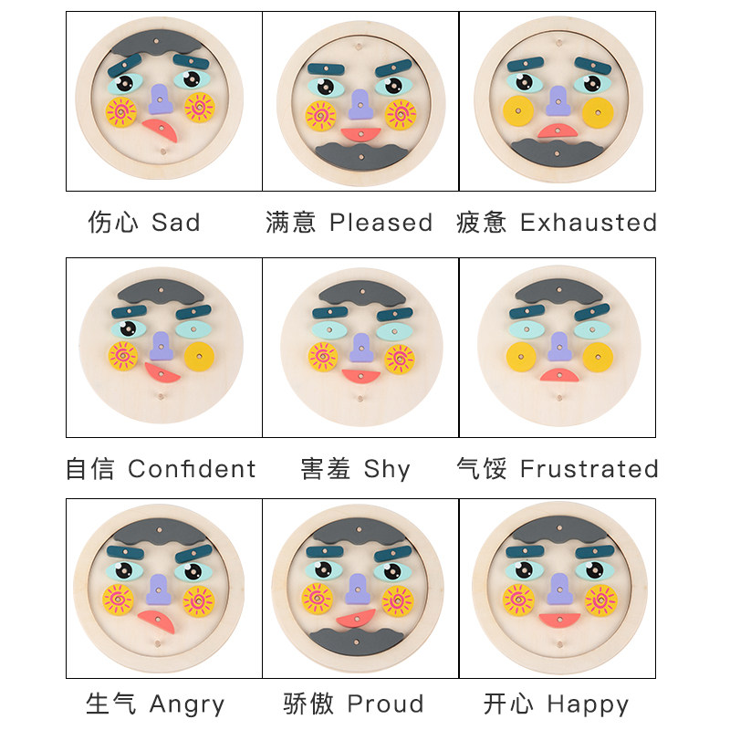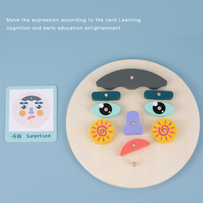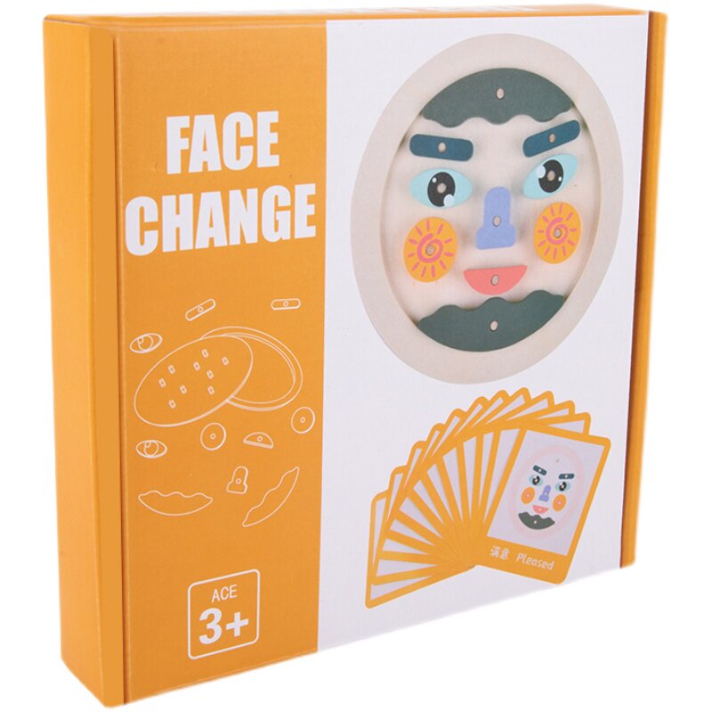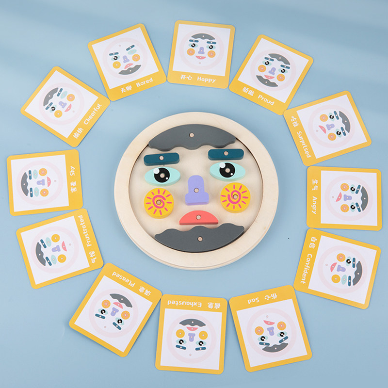 Face changing face wooded toy Puzzle Desktop 12 sheets Double face card Male girl's expression Package Structure game 2 years old