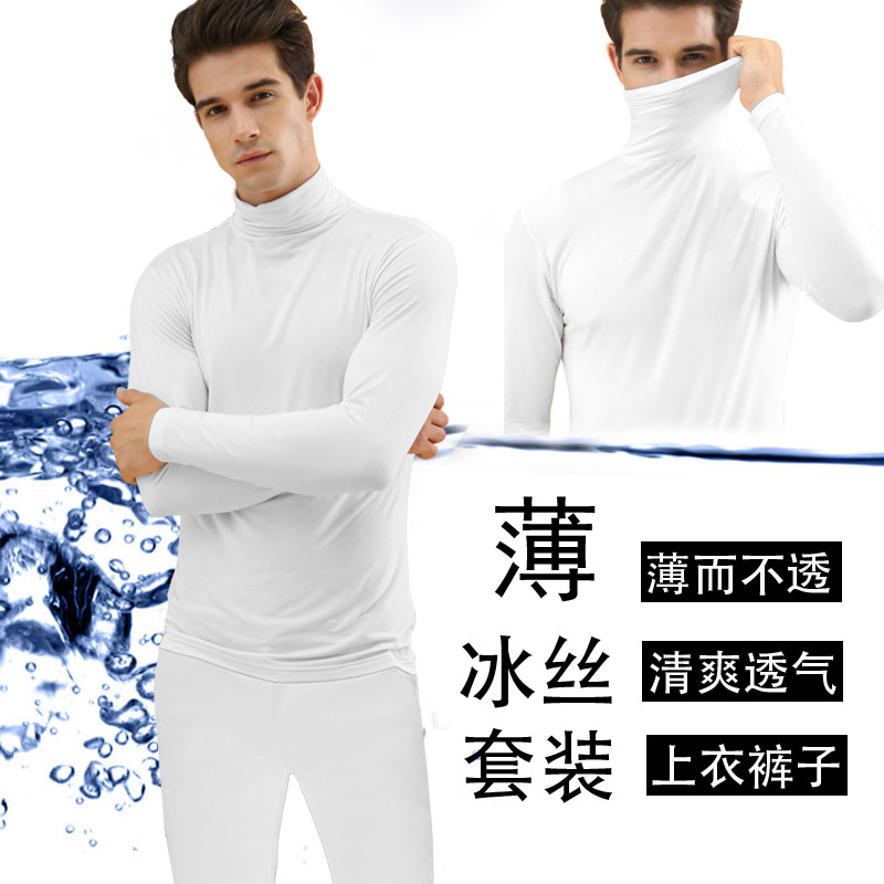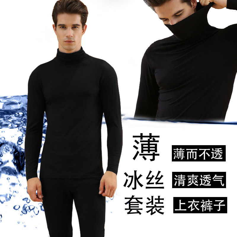 Men's thin ice silk MoDel long autumn clothes sanitary pants suit cool and upfront golf sport beating undershirt
