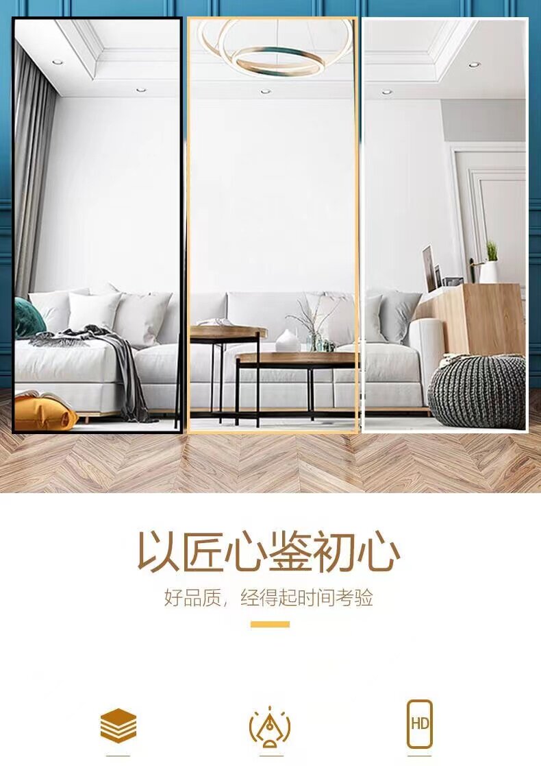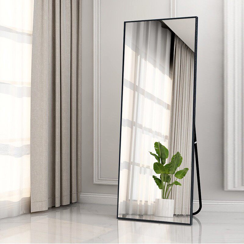 Full body mirror floor mirror square aluminum alloy suspended metal dressing mirror bedroom red modern simple mirror