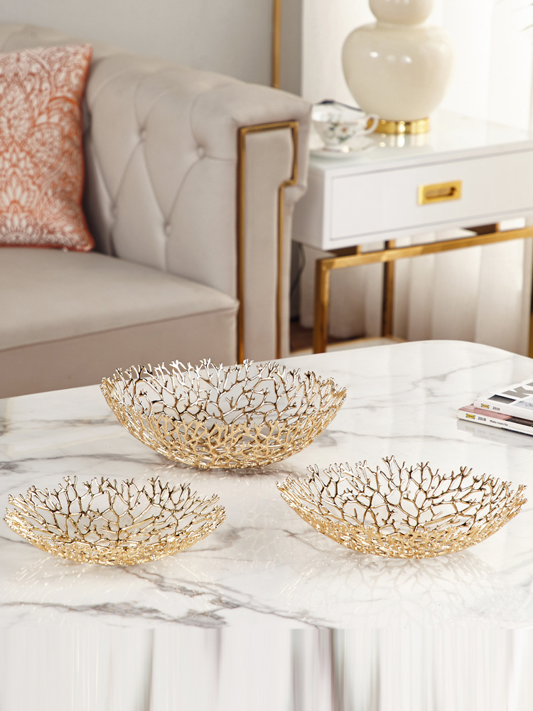 Light Extravagant Hollowed-out Fruit Containing Pan Upscale Prototype Interboard Table Swing Piece Metal Fruit Pan Fruit Pocket Living Room Home Decoration