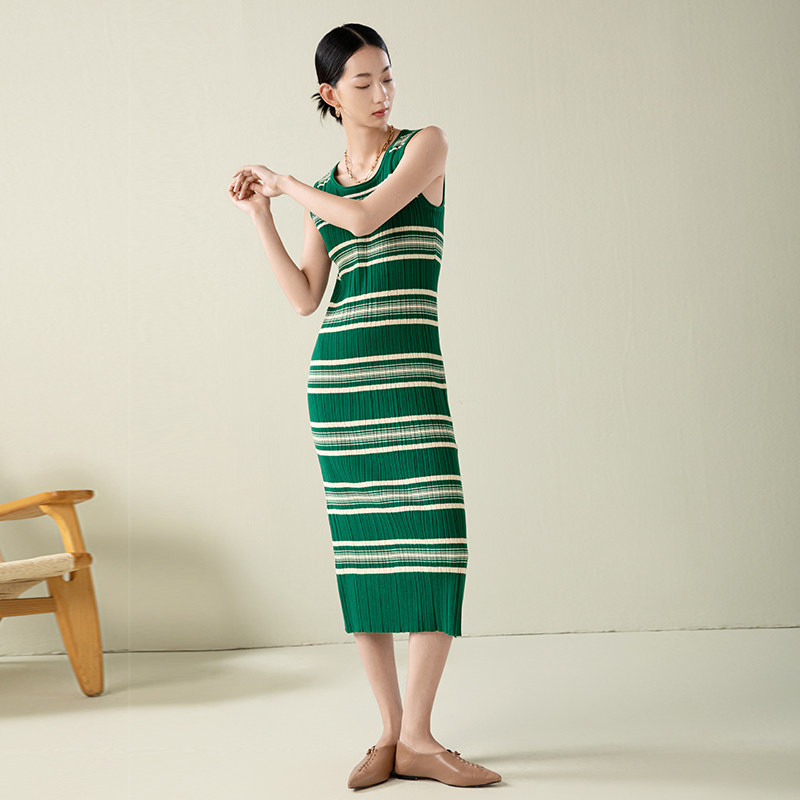 GDZY Stripe Knit Foreign Dress Woman Long Version Spring Summer Small Subtemperament Swarm With Sleeveless Collision Color Long Skirt 2022