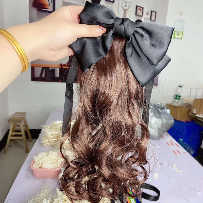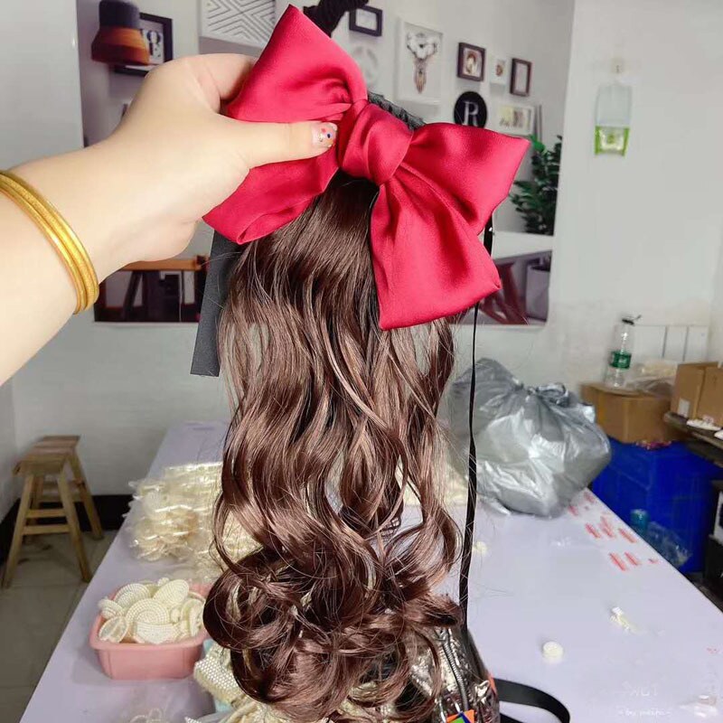 Child wig female baby pony roll princess modelling little girl's performance photo clip butterfly knot headwear