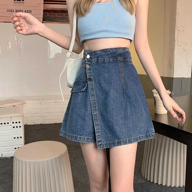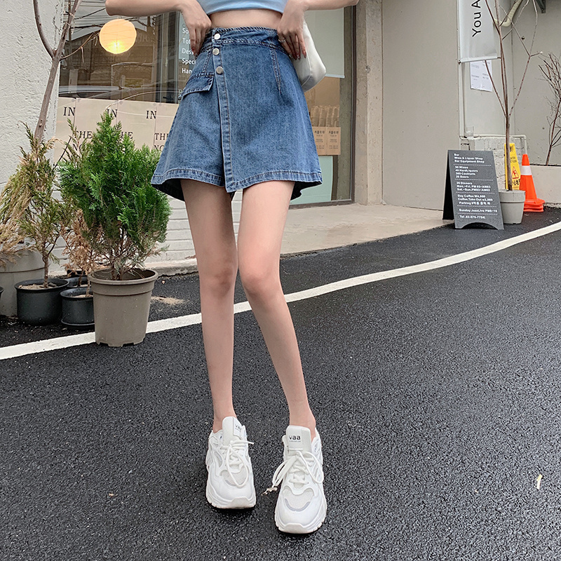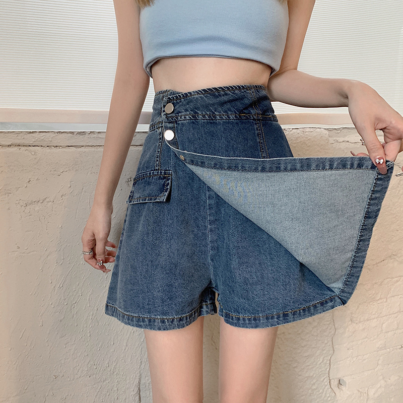 2022 Summer new large size SIZE FAT MM HIGH WAIST DENIM HOT PANTS SHORTS WOMAN DESIGN FEELING IRREGULAR FAKE TWO DRESS PANTS