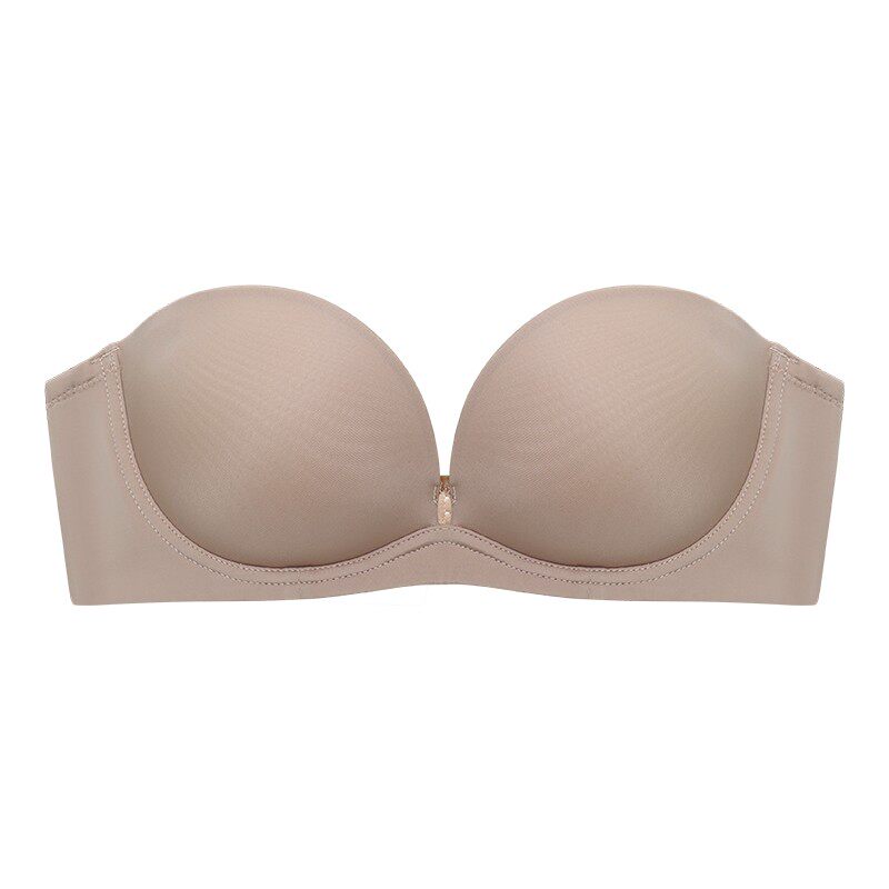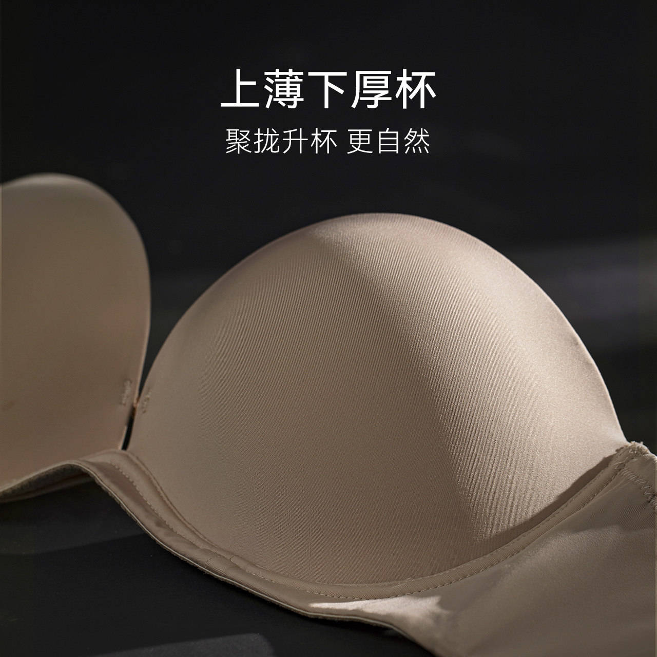 Fenstina glossy finish without shoulder strap bra deep V small chest invisible coalesce with anti-slip upper and lower thick female underwear