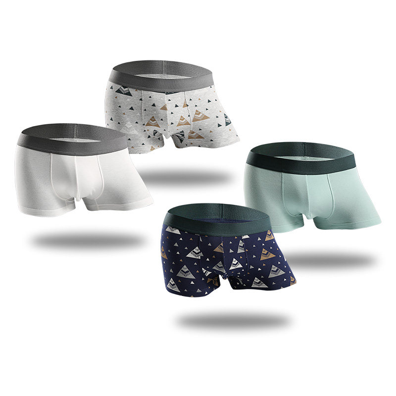 Fentem Men's Underwear Men's Flat Corner Pants Pure Cotton Breathable Trendy Personality Full Cotton Large Size Size Youth Four-corner Pants Underpants Head