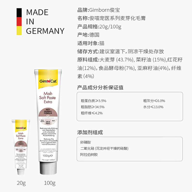 (Pet doctor version) Germany imported Gimborn Jun Junbao hair cream nutrition cream cat spit row hair ball