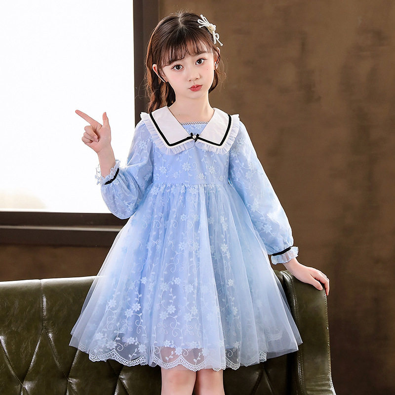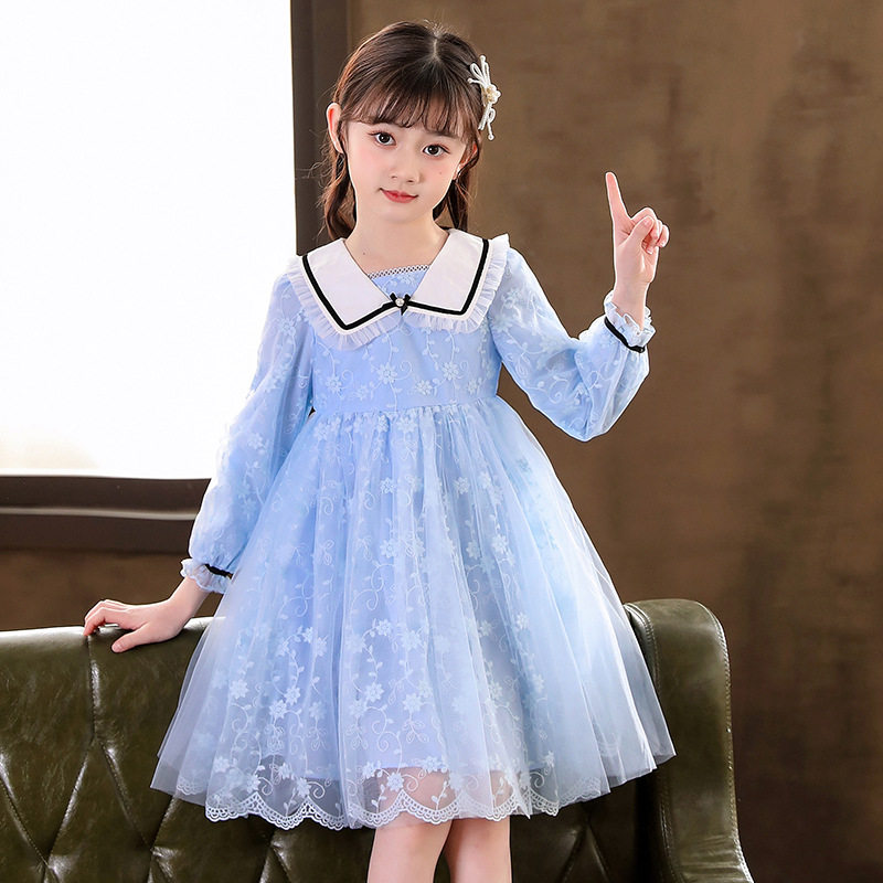 Girl Ocean Dress Children Dress Princess Spring Dress Children Dress Lace Dress Dress Gown Baby Little Girl Foreign Pie Blue