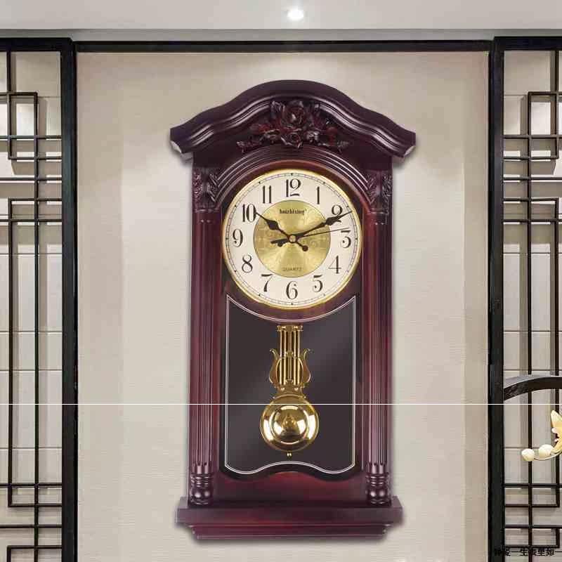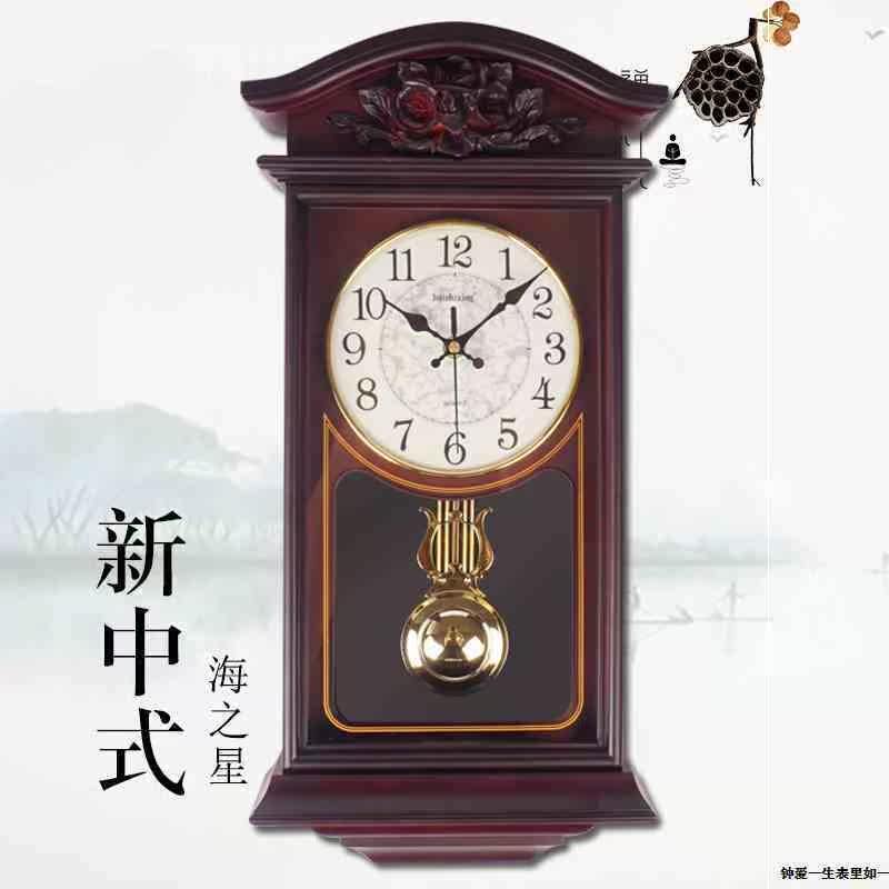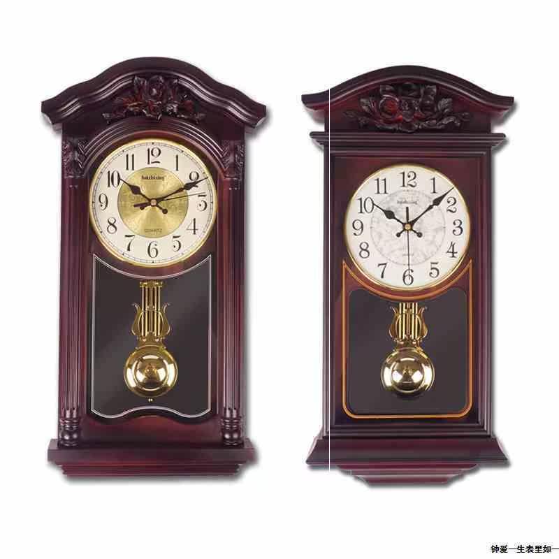 New new Chinese imitation wood retro pendulum clock Xuanguan and watches When the clock is reported, the mute clock home Chinese wind hangs up the clock