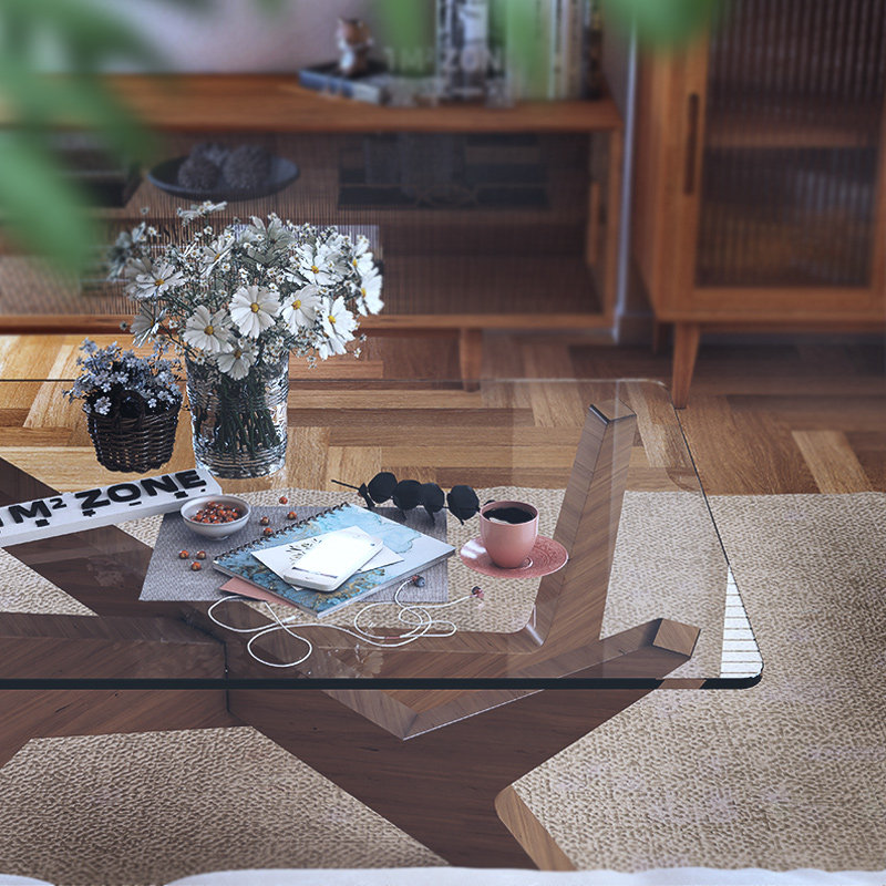 Transparent ultra-white glass (a few feet of log color), transparent clear (a few feet of black), transparent clear (a few feet of walnut color), transparent clear glass (a few feet of log color)