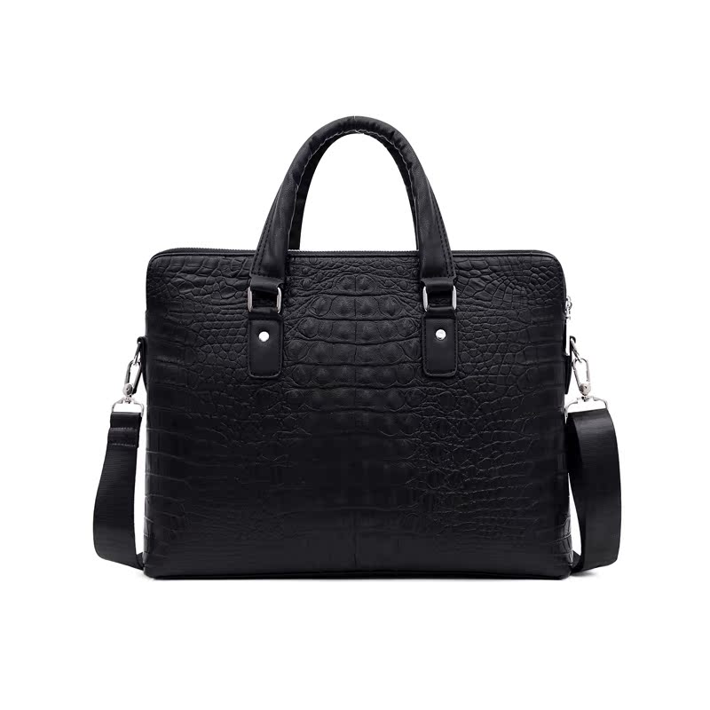 Youth business horizontal zipper handbag men's crocodile pattern business briefcase trendy men's soft leather computer bag men's