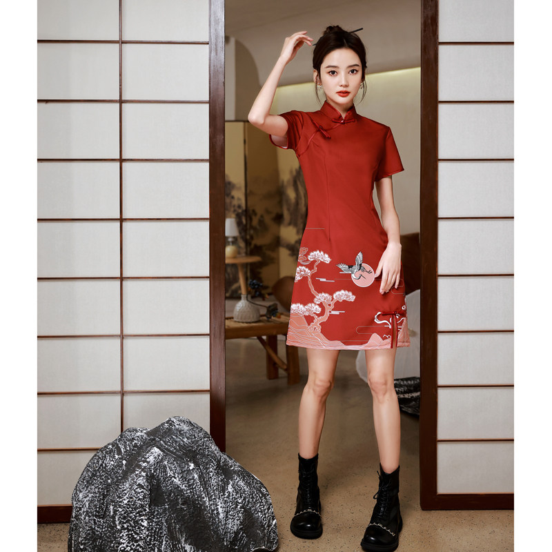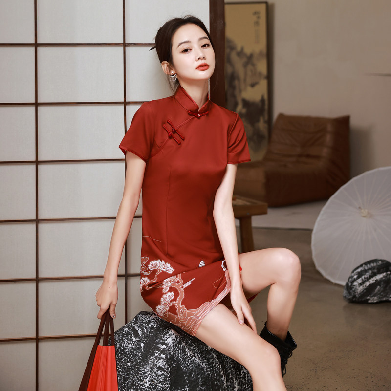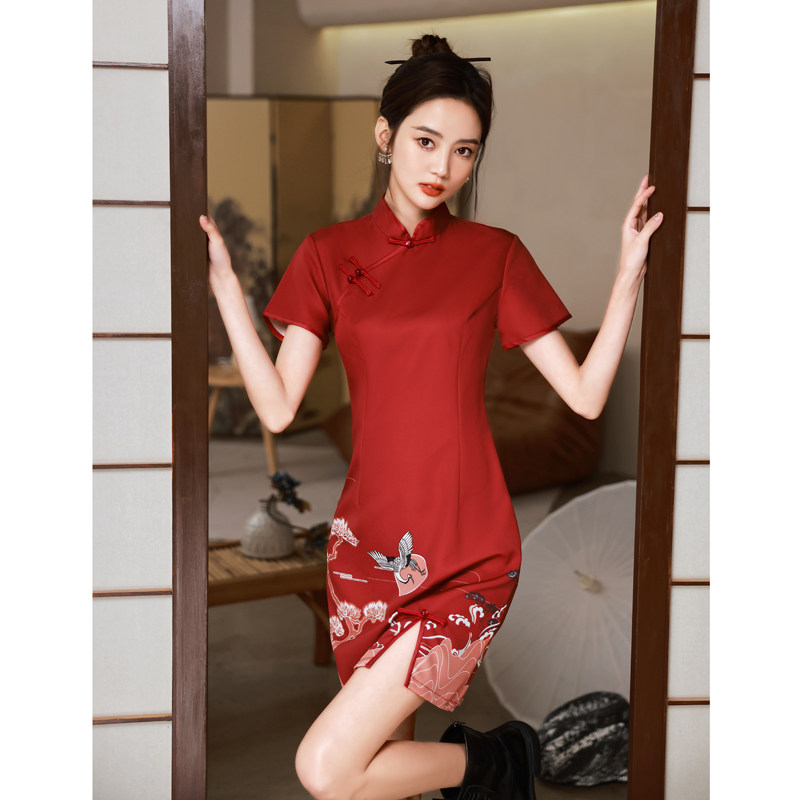 Red improved national tide cheongsam women's summer 2022 new young girl Chinese style college entrance examination daily
