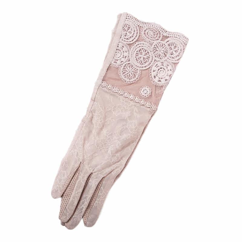 Spring and summer ice silk lace embroidery women's sun protection gloves mid-length anti-UV riding touch screen arm sleeves