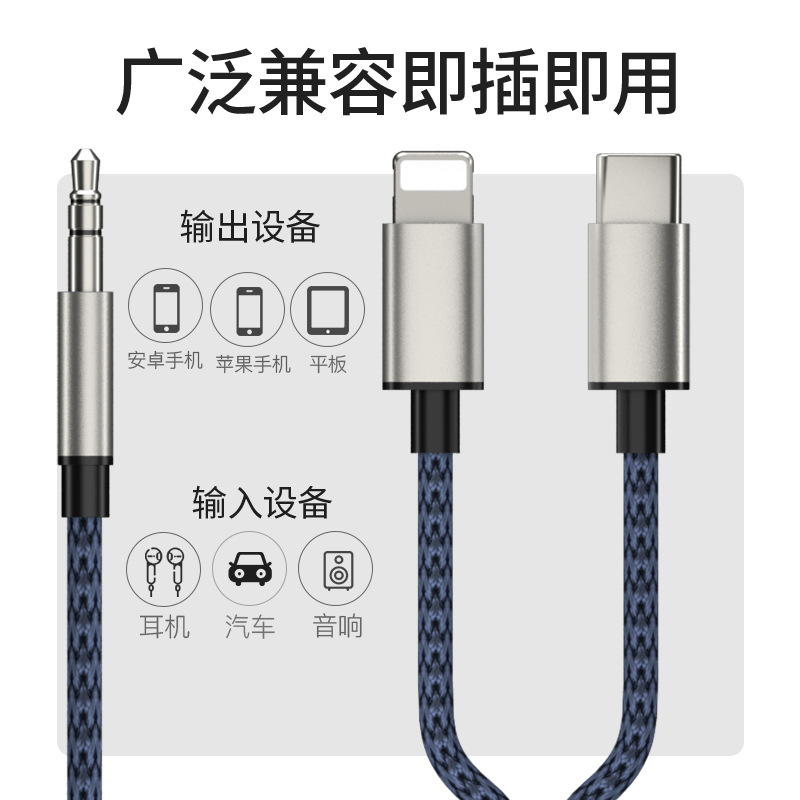 (lightning typec) turn 3 5 two-in-one audio line (blue) (3 5 lightning) turn 3 5 two-in-one audio line (blue
