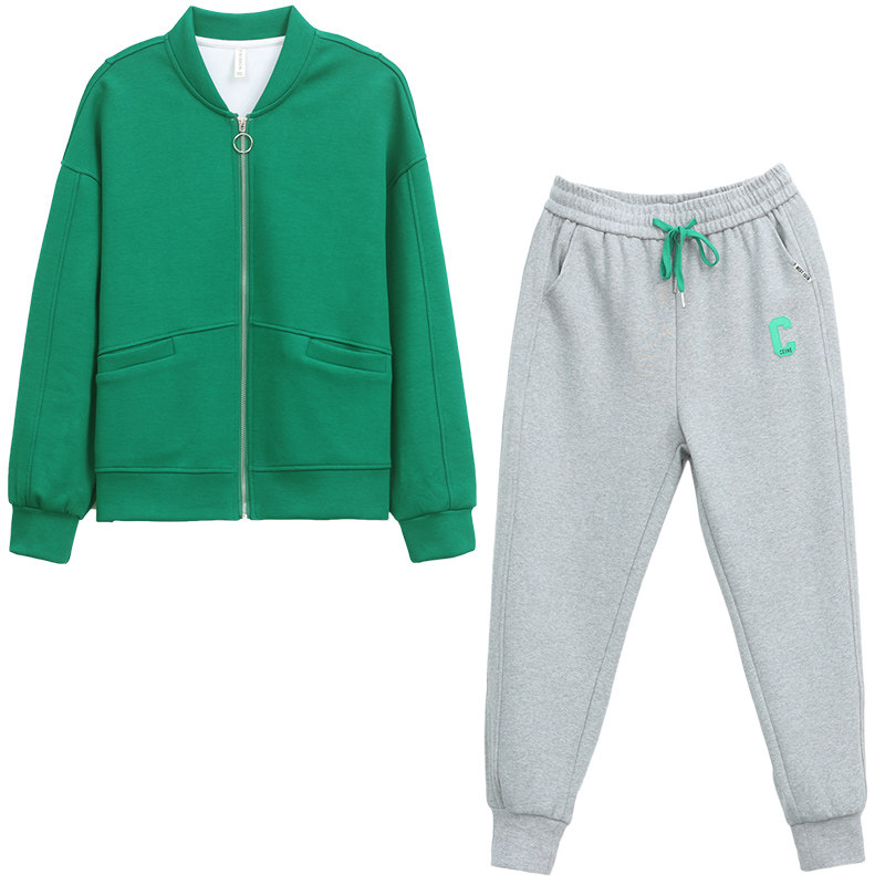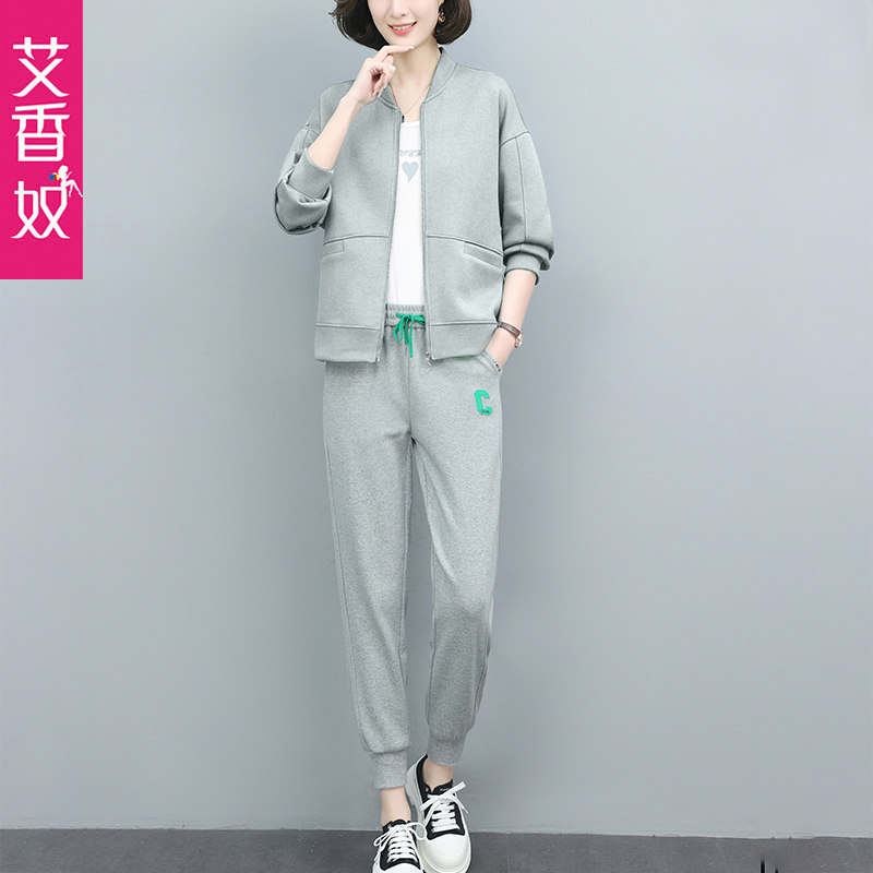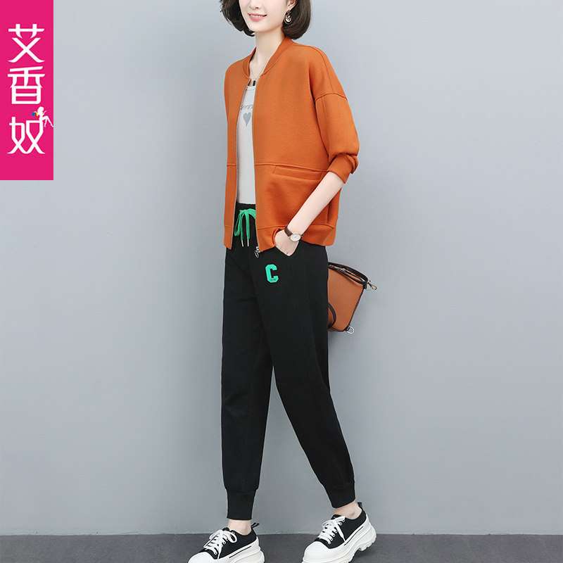 Casual Sports Suit Women 2022 Spring Autumn Season New Loose Big Size Code Port Wind Moms Clothing Retro Two Sets