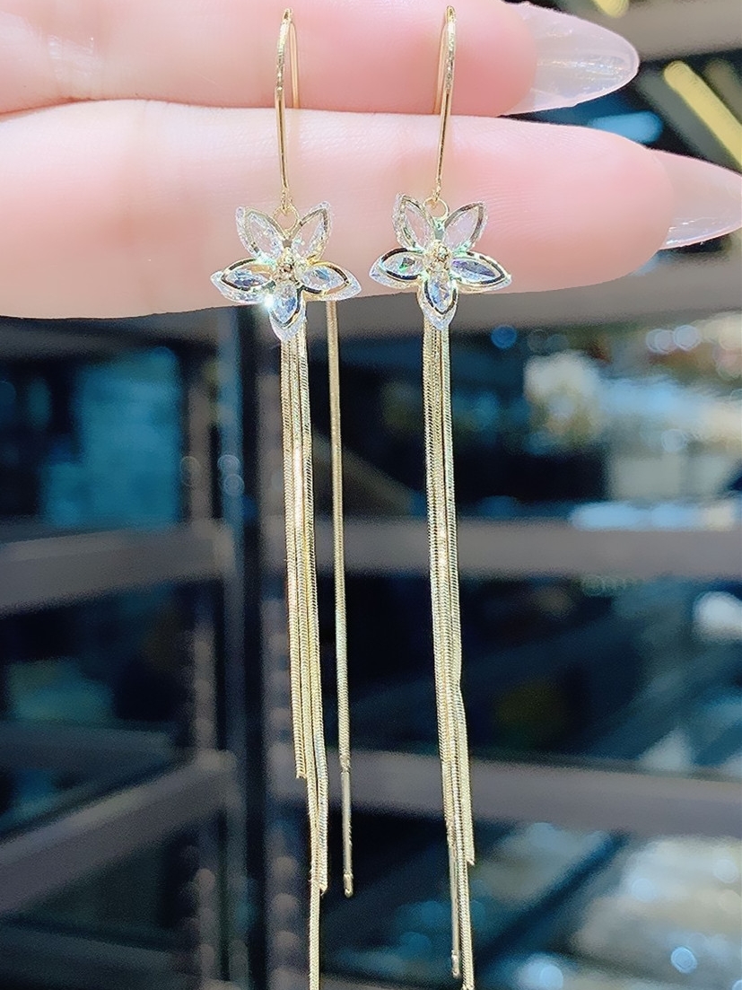 South Korean long version of the stream Sozirite flower earrings woman 2022 new qi and light luxury high sense anti-lose ear decoration