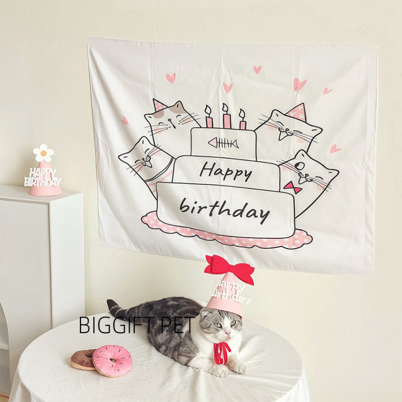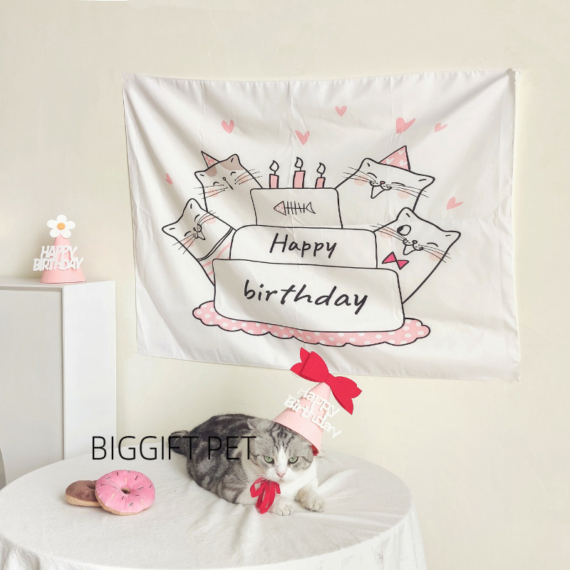 BIGGIFT PET~Kitty Birthday Background Wall Decoration Party with pink cute photo props