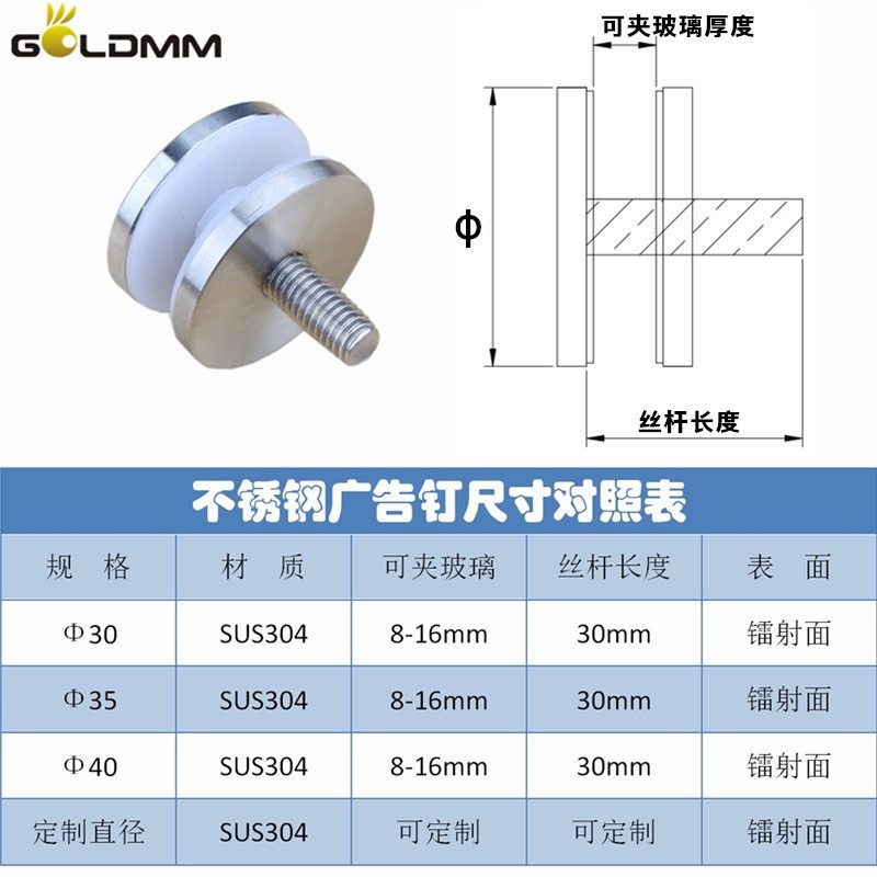 Diameter 30 * M8 * 30 glass nail 304 material diameter 35 * M8 * 30 glass nail 304 material diameter 40 * M8 * 30 glass nail 304 material