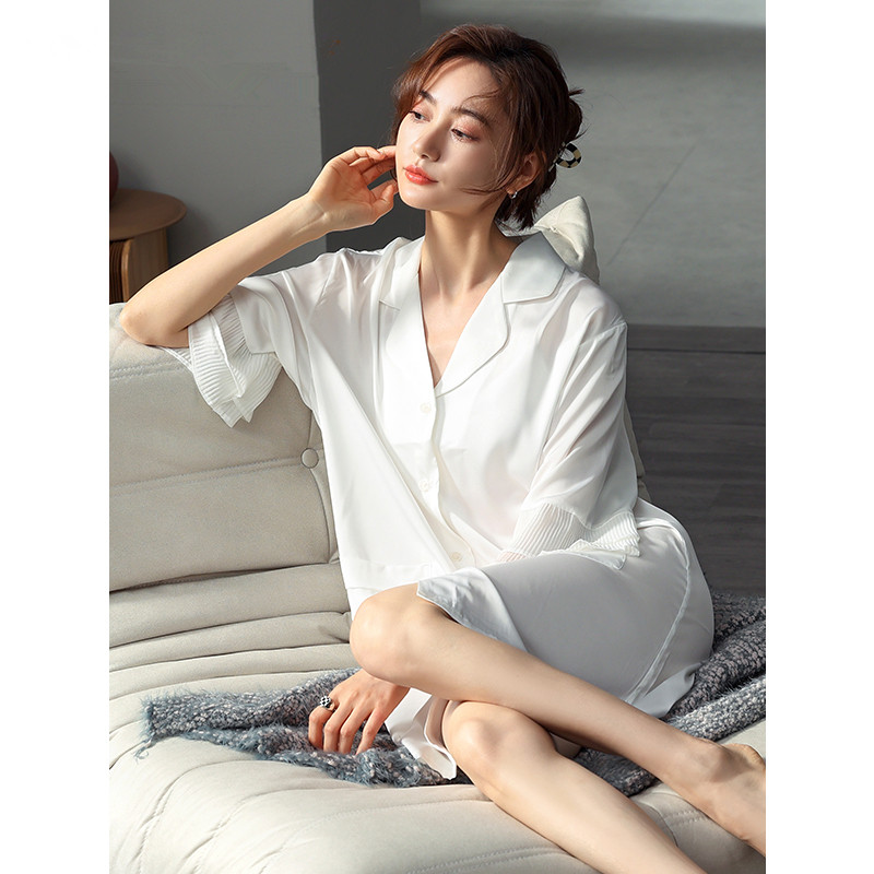 Sandro Vicari Ice Silk Sleeping Dress Feminine Shirts Pyjamas 2022 New Summer Extras Home Wear