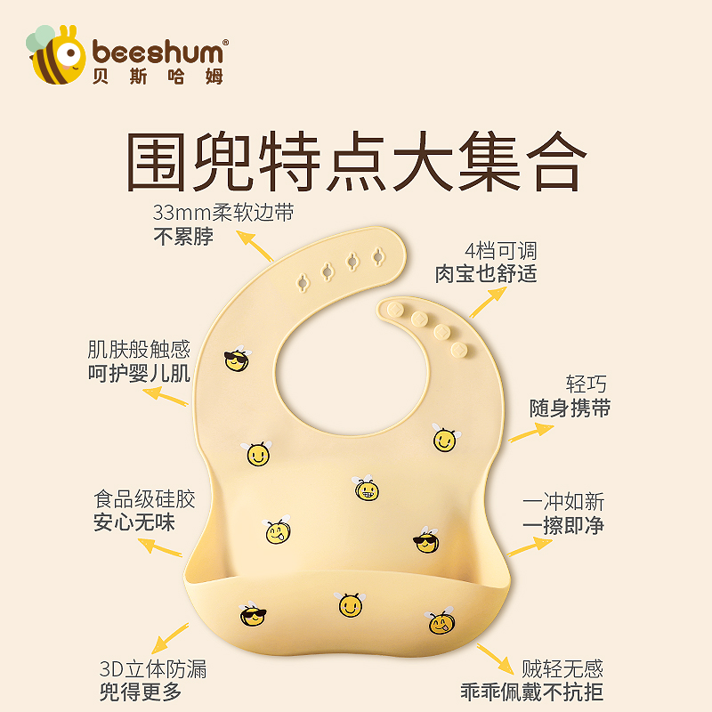 Today's single snatched five discount three major innovations to easily solve troubling silicone rubber bib-small bee silicone rubber bib-Sleeping Dragon Silicone Purse-Water honey peach collection Add to cart Shipping cost insurance